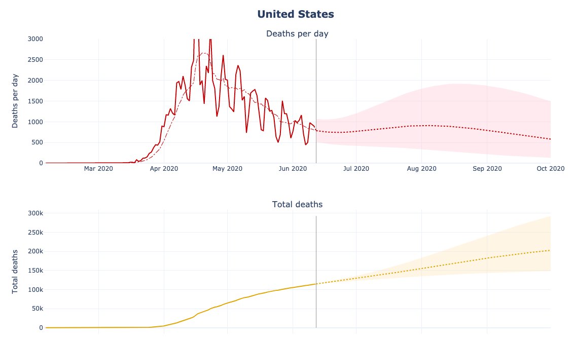 As a number of people have pointed out, talk of a "second wave" of Covid-19 misses the point that the first wave never ended; this biases conversation by making it seem as if staying at the current death rate would be OK. Is this projection acceptable? 1/ covid19-projections.com/#current-us-pr…