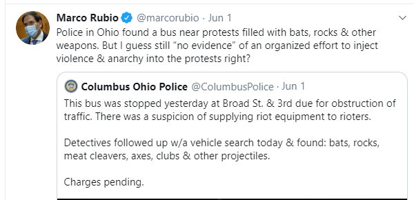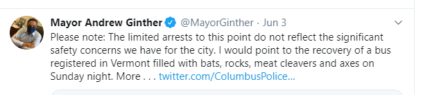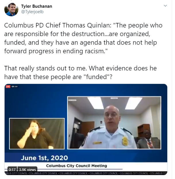 You'll recall that Columbus PD Chief Quinlan claimed, without evidence, the protesters causing damage were "organized" and "funded"