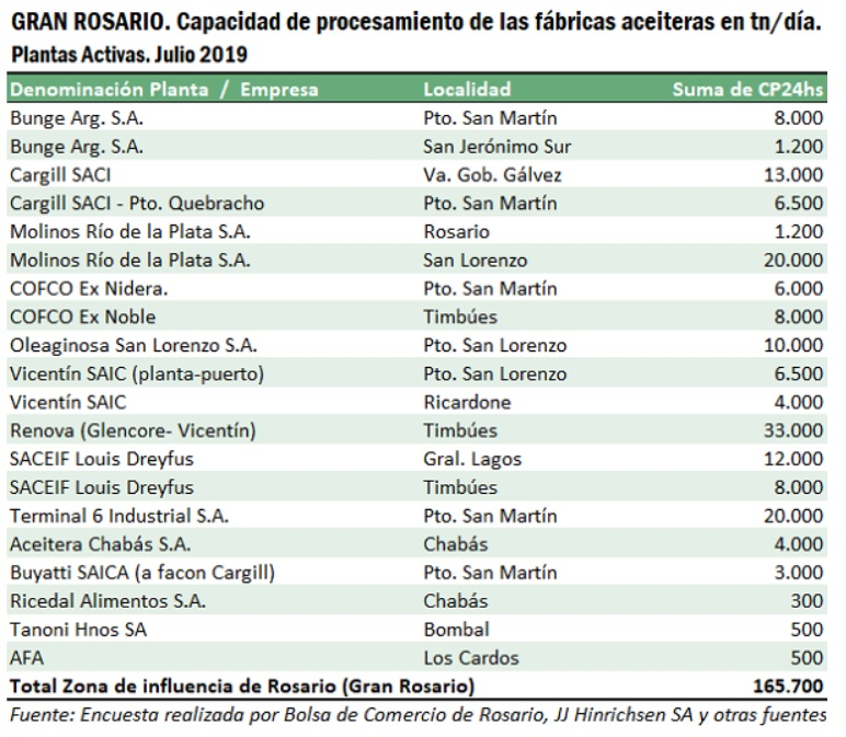 Atrazo grueso, la Argentina cosechó 50 Mill Tn de los cuales exportó 10 mill como porotos en 2019. A los 40 MIll Tn que ingresaron a la industria se le suman 3/4 millones más de Paraguay y Bolivia.