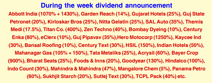 ABB India, HCL Technologies, Jindal Stainless, KSB, Sanofi India, and Vesuvius India will turn ex-dividend next week.