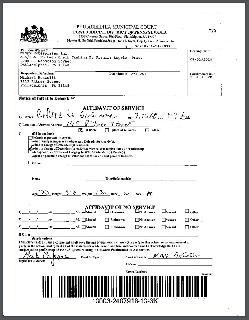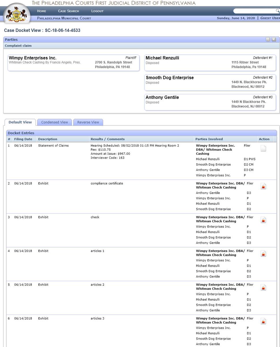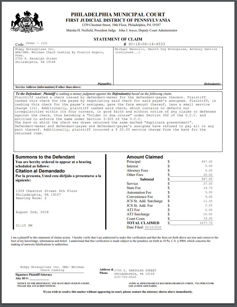 (That same amount was added onto Renzulli's case as a bounced check fee.)