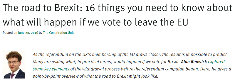 Three days before the EU referendum, @alanjrenwick published ‘The road to Brexit: 16 things you need to know about what will happen if we vote to leave the EU’ on our blog. The post was accessed well over 100,000 times.