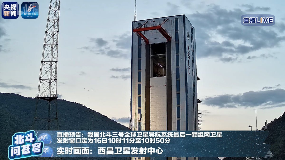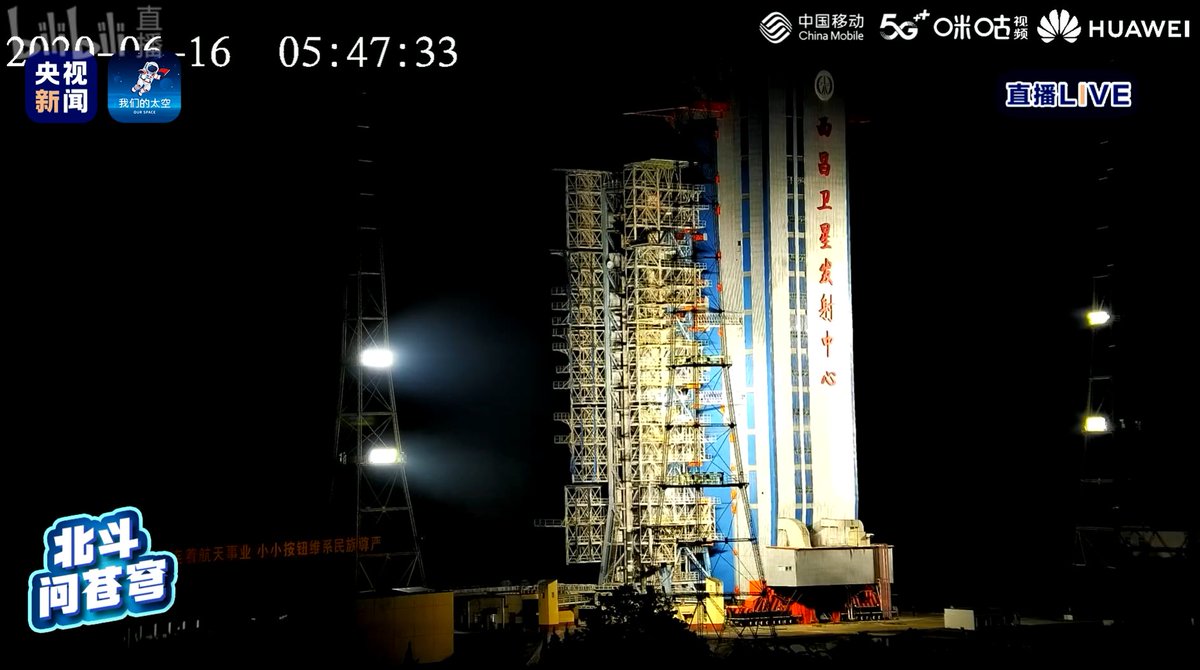 Rare event: Chinese launch with live stream coming up at ~02:11 UTC Tuesday/10:11 p.m. Eastern tonight. The Beidou satellite to complete the 35-sat navigation/position system to be launched by a Long March 3B from Xichang. Streams: live.bilibili.com/21686237?from=… live.bilibili.com/10921840?visit…