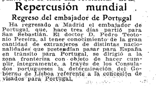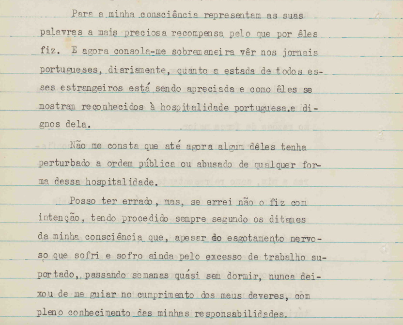Son plaidoyer n’émeut pas Salazar qui, pourtant, plus tard, se vantera publiquement de l’hospitalité du Portugal et du sauvetage des réfugiés