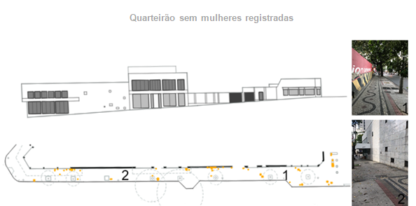 Essa imagem mostra um um dos quarteirões que chamou atenção por não tido nenhuma mulher registrada desenvolvendo atividades estacionárias, apesar de apresentar um fluxo considerável de pessoas ao longo do dia.