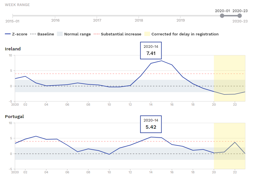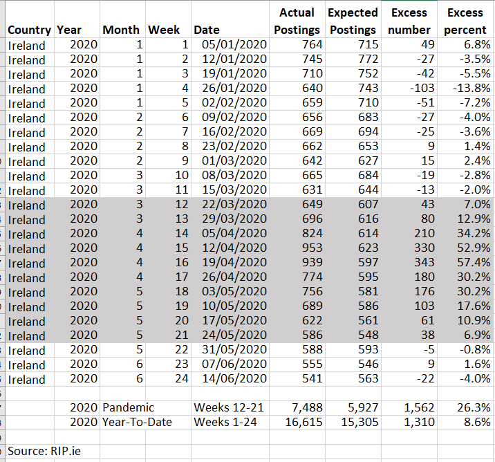 For Ireland, this can be put at mid-March to mid-May and results in an excess of 27%.