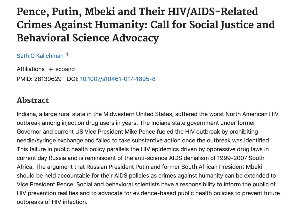 I'm not kidding! Mike Pence is literally a case study in public health for directly enabling Indiana's largest outbreak of HIV and AIDS. pubmed.ncbi.nlm.nih.gov/28130629/