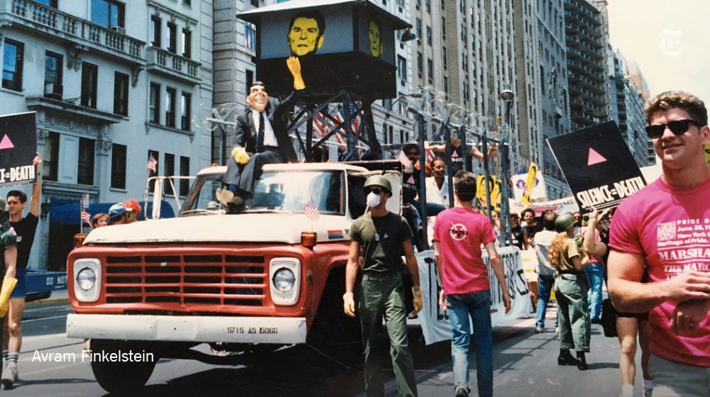 “We had discussed a number of things to make a statement about AIDS during the Pride March in 1987,” said Avram Finkelstein, a founding member of Act Up. “We ultimately embraced the idea of a float designed like a concentration camp." nyti.ms/2YBIw1b