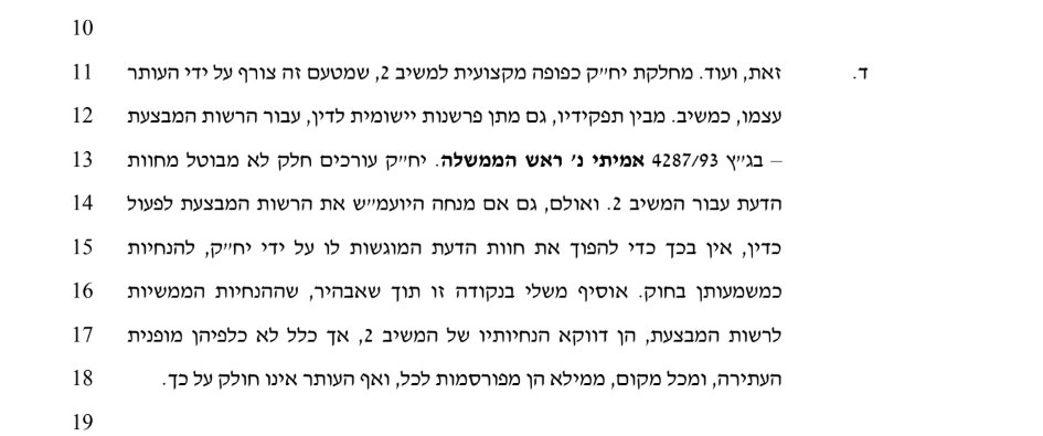 1. העובדה שמדובר בפסק דין במחוזי ולא בעליון לא רלוונטית, הטענה שההנחיות של ייעוץ וחקיקה לא נחשבות הנחיות מחייבות הובעה על ידי משרד המשפטים בעצמו: