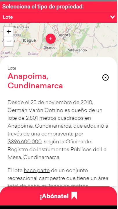 3. A 2020, Varón Cotrino es dueño de un apartamento en Bogotá que compró por $521.480.588 en junio de 2008. También le pertenece un lote en Anapoima que compró en noviembre de 2010, por $396.600.000.