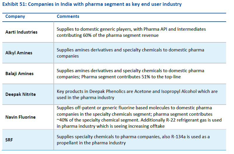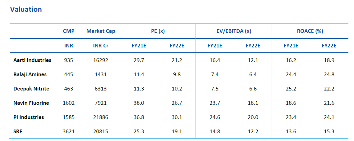 Focus companies - SRF, PI Industries, Navin Fluorine, Aarti Industries, Balaji Amines, Deepak Nitrite.