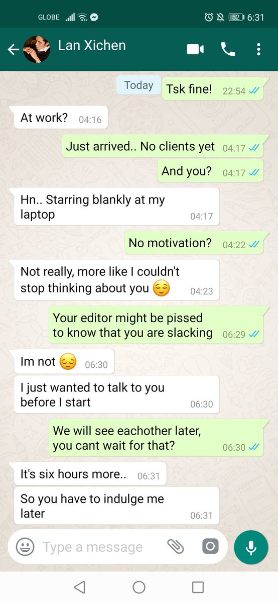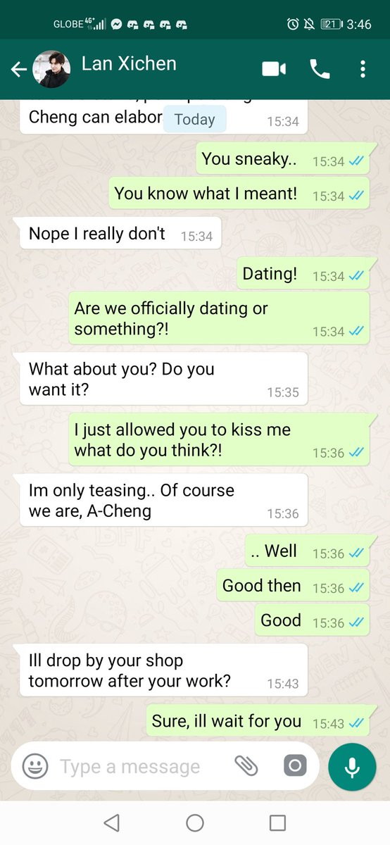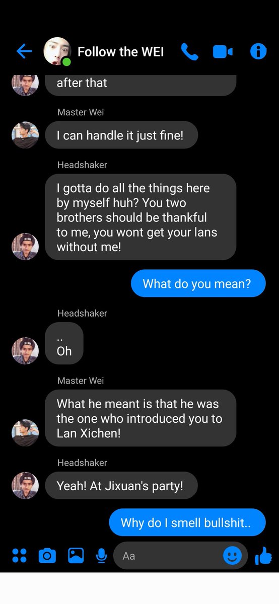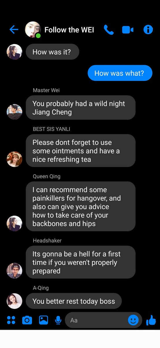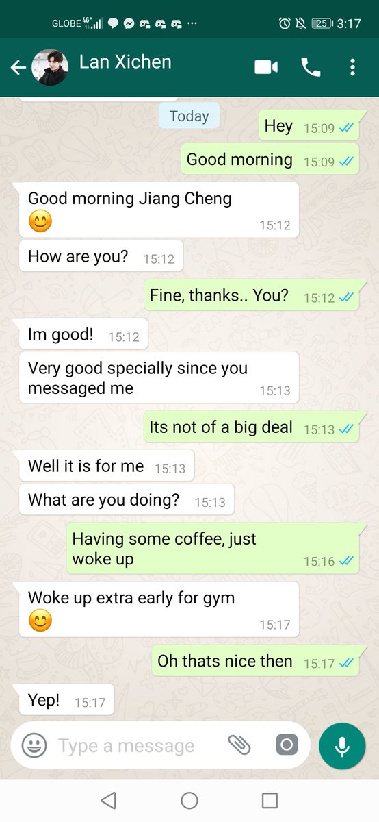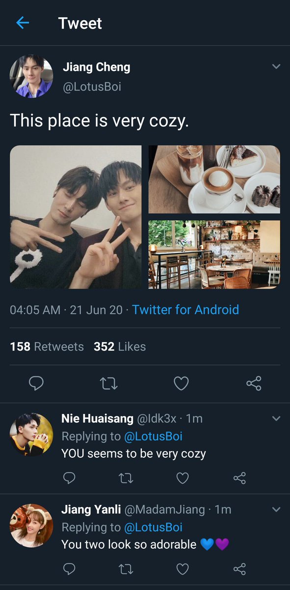 After all Jiang Cheng couldn't stop thinking about him as well. He took a sip from his milk tea before hearing the notification on his phone