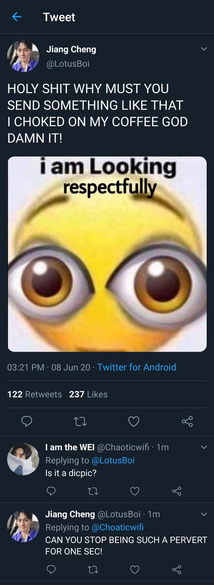 "What the fuck is this?!" Jiang Cheng hissed, showing him the phone.
