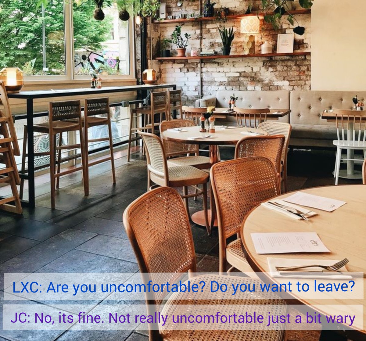 "Okay.. Well enjoy your... Date" He made a small smirk before leaving their table.
