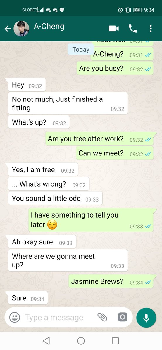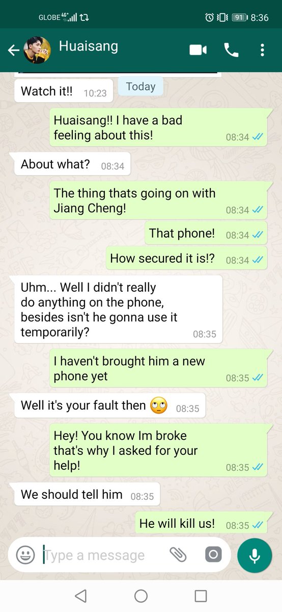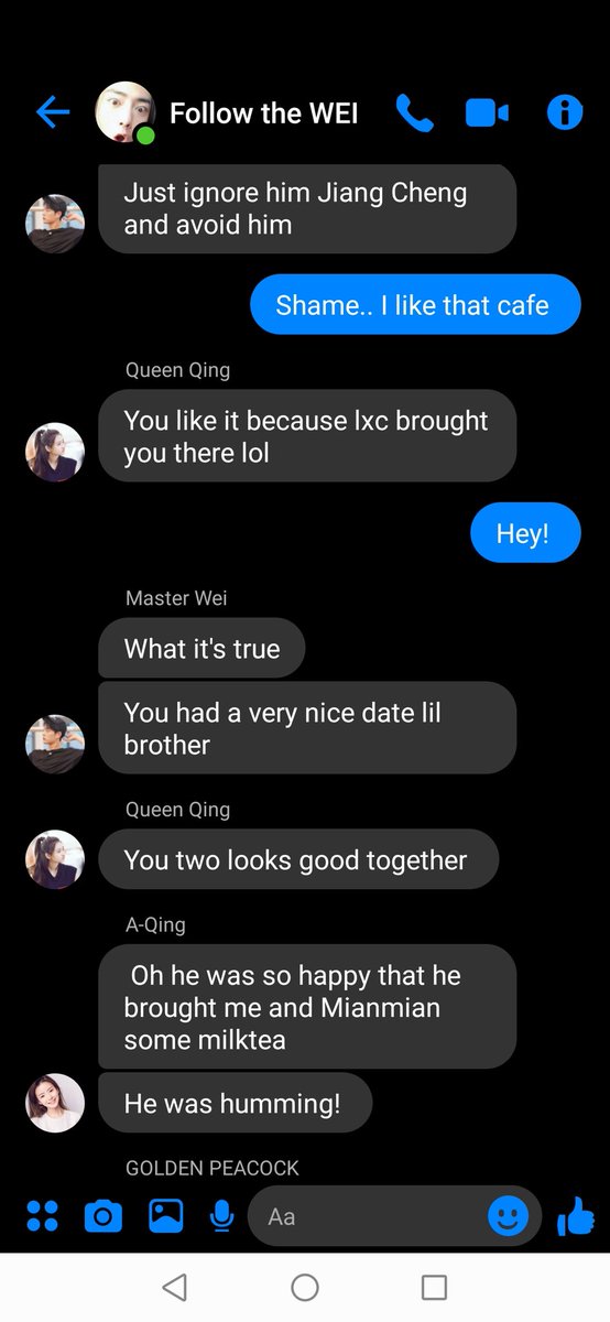 Jiang Cheng on the other hand settled on his seat, half way through finishing his milk tea when his phone vibrated.
