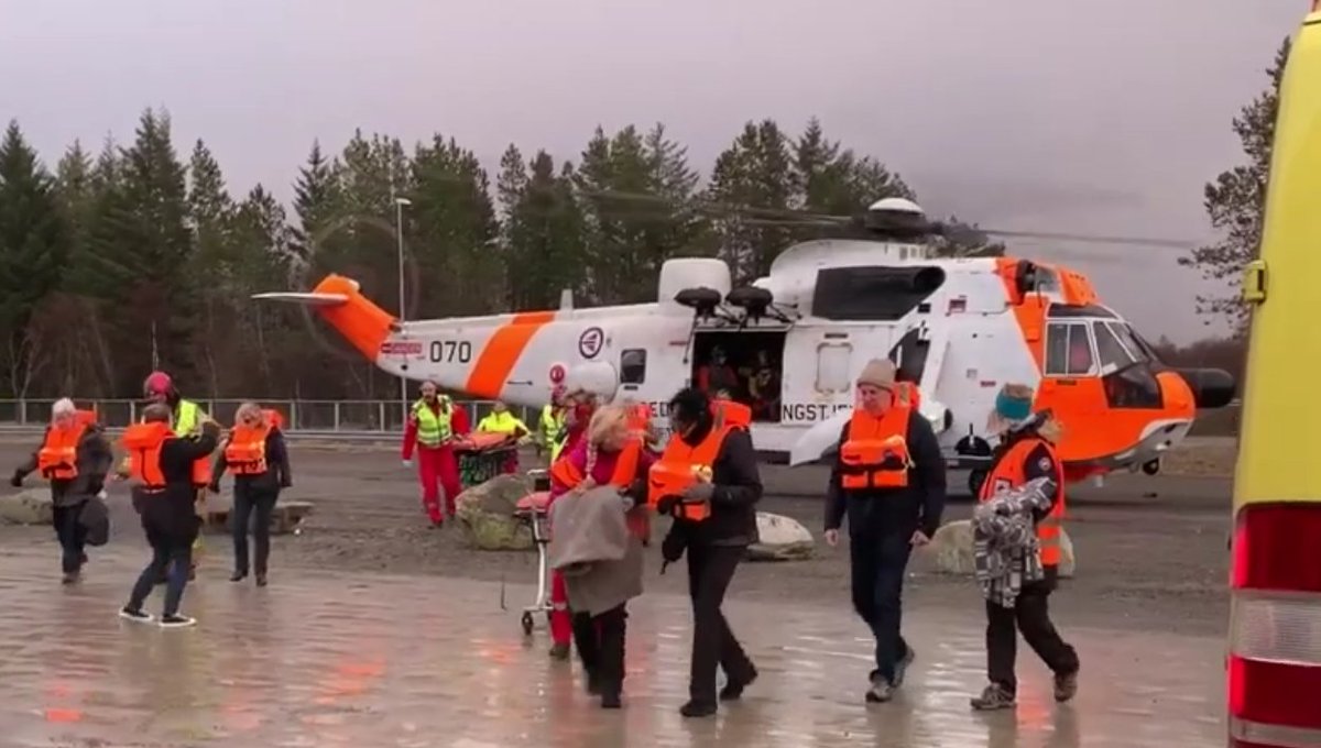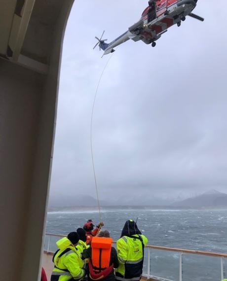Por estas razones cerca de las 2 pm se emitió una llamada de auxilio para solicitar una evacuación por Helicóptero para prevenir una catástrofe en caso de que el barco comenzara a hundirse en las agitadas y frías aguas de al costa Noruega.