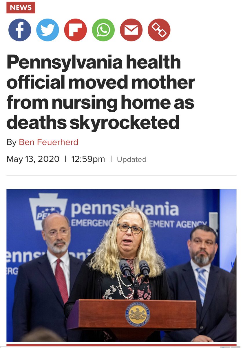 health official responsible for overseeing nursing homes in Pennsylvania where nearly 70 percent of the state’s coronavirus-related deaths have occurred — has reportedly moved her elderly mother out of a facility as deaths skyrocketed