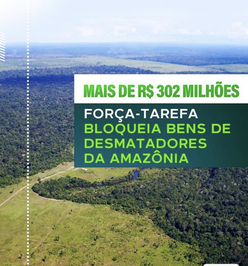 A1- A Força-Tarefa em Defesa da Amazônia da @AdvocaciaGeral bloqueou mais de R$ 302 milhões em bens de desmatadores da Floresta Amazônica no MT e no PA. @secomvc