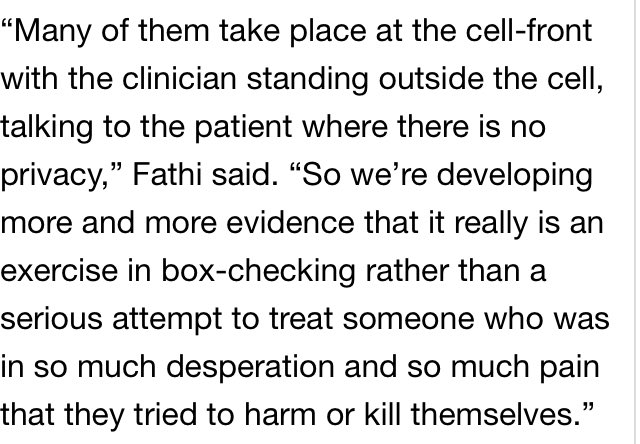 “There have to be efforts to identify people who are at elevated risk of self-harm and suicide and that starts with intake,” Fathi said.