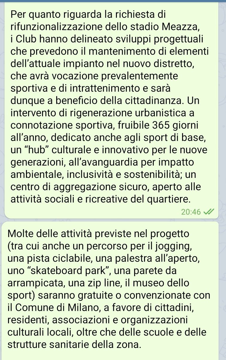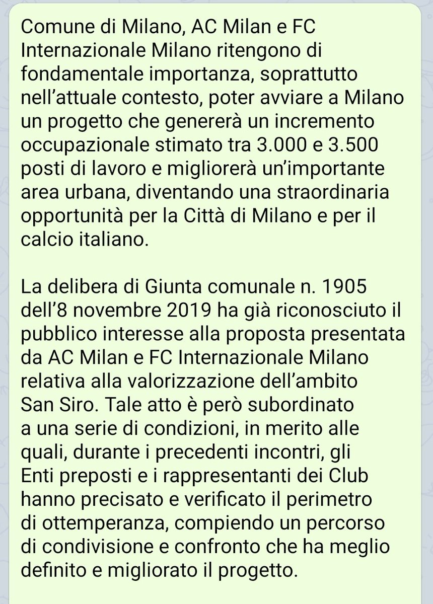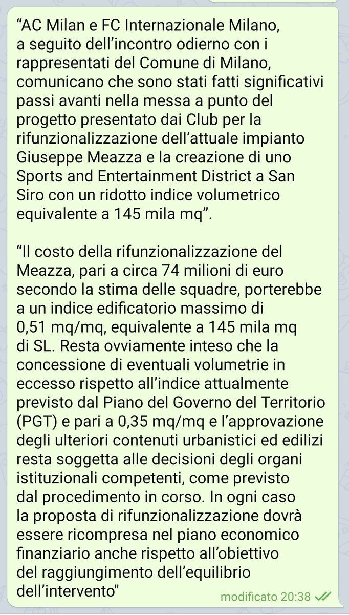 Ad essere onesti una parte del Cons. Comunale, anche dalla mia parte politica, il nuovo stadio (sacrificando il vecchio) non lo ha mai voluto. Quindi sono sopraggiunte nuove richieste ai club su distanza, capienza e altro. Ad oggi i club non ci hanno comunicato rinuncia a SSiro..