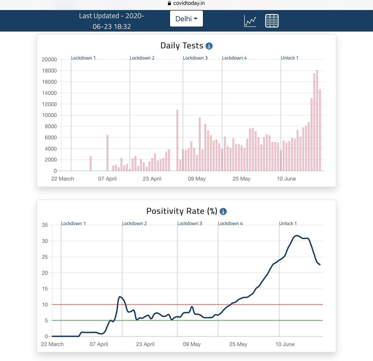 Delhi has 3x its testing capacity from 6000 to 18000 tests per day. 👏 However, most of this increase comes from the new rapid antigen tests, which have much lower sensitivity. This has important implications.