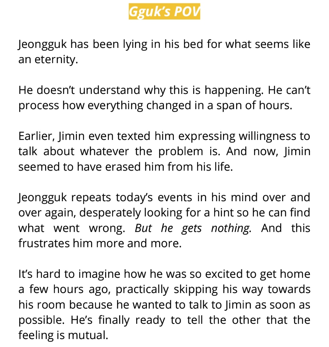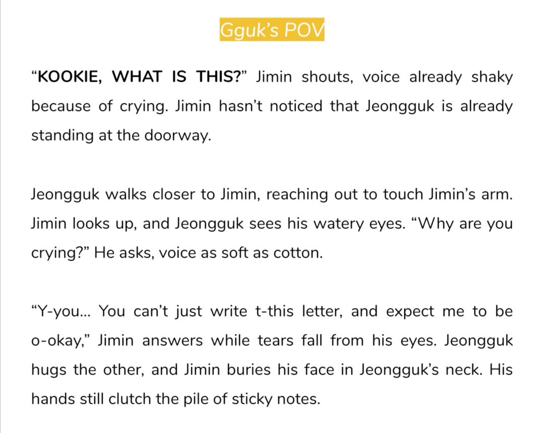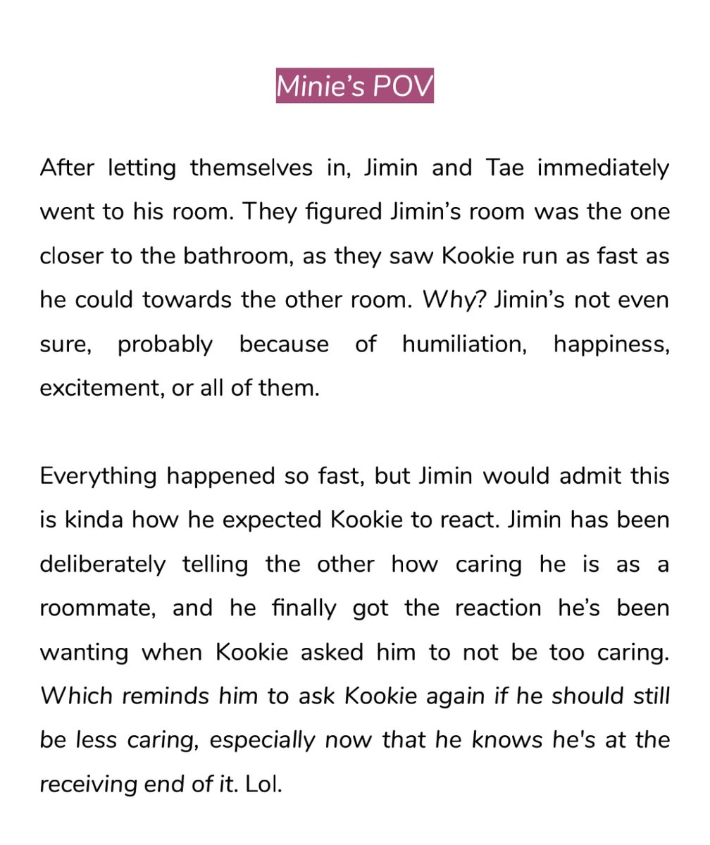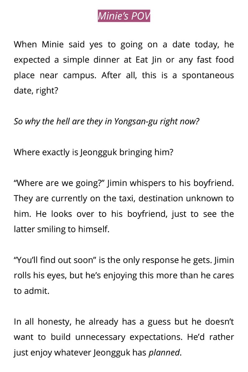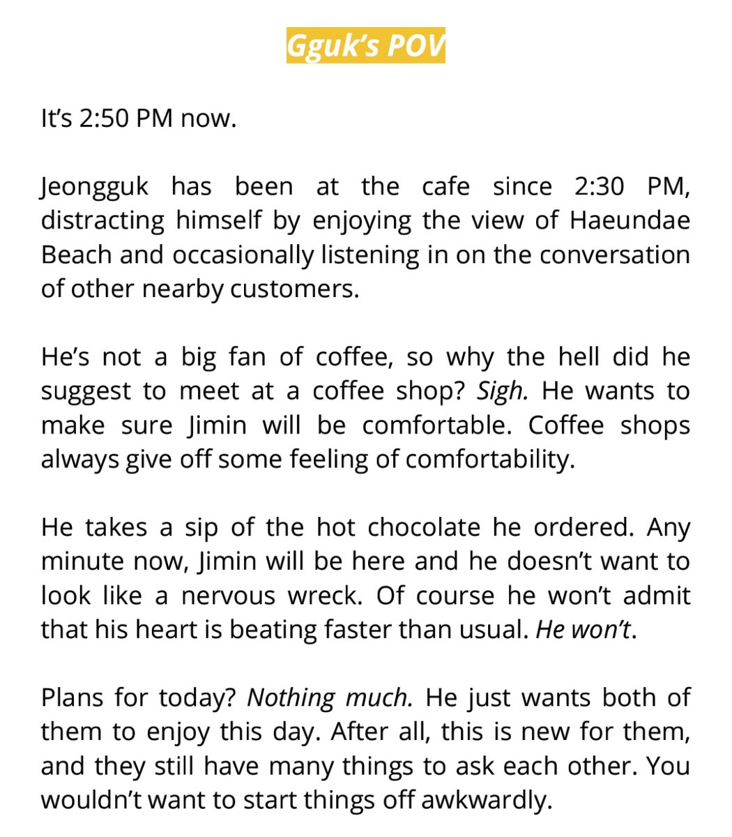 — i include narration from other characters (not gguk/minie) bc i want the readers to see things from their perspective & to know their feelings as well ❤️