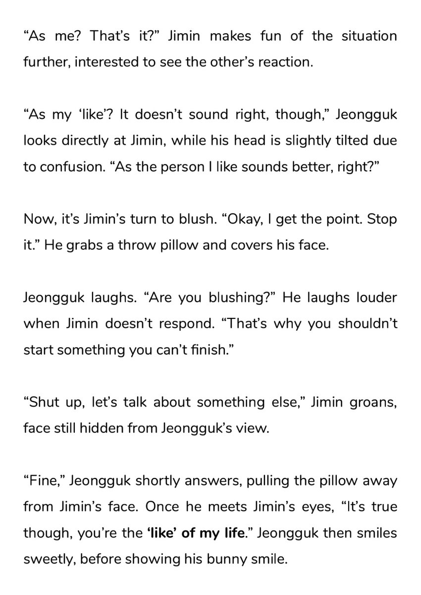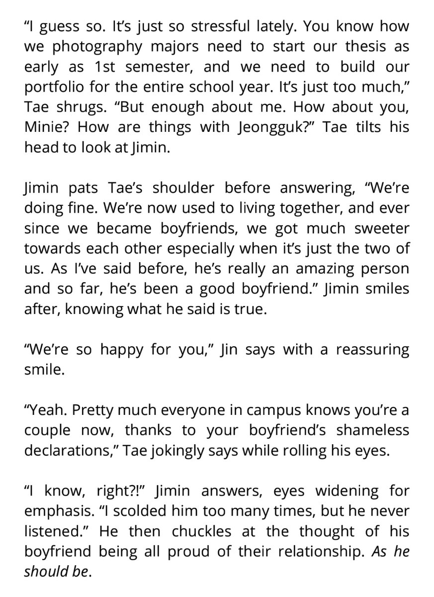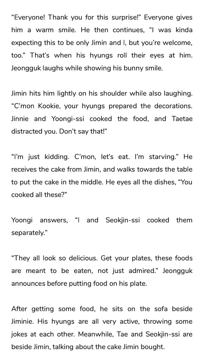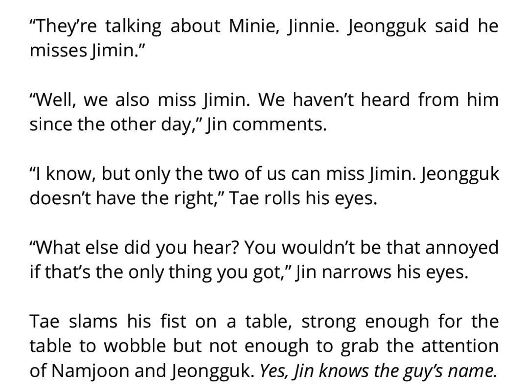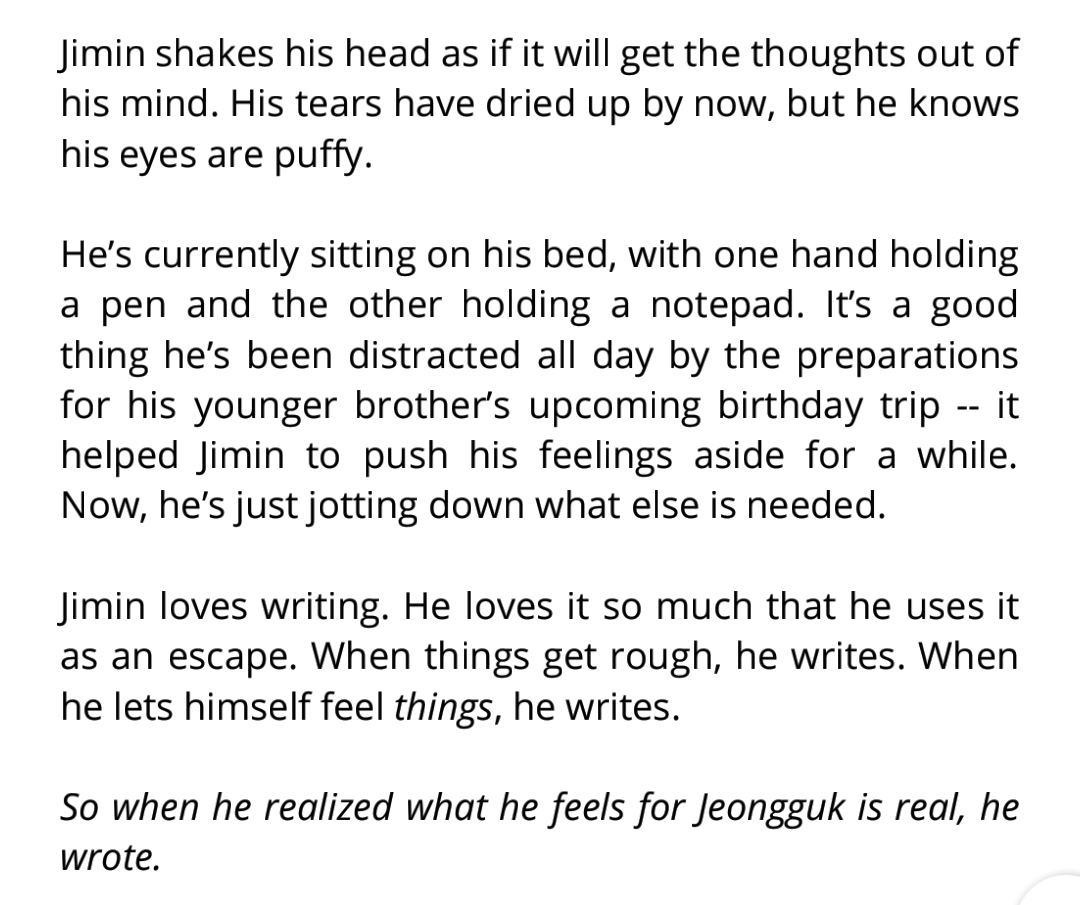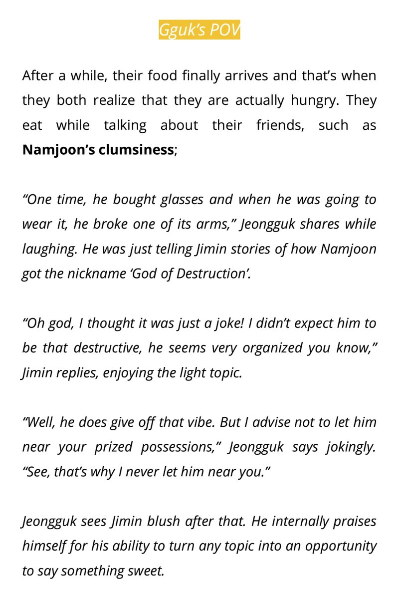 — i include narration from other characters (not gguk/minie) bc i want the readers to see things from their perspective & to know their feelings as well ❤️