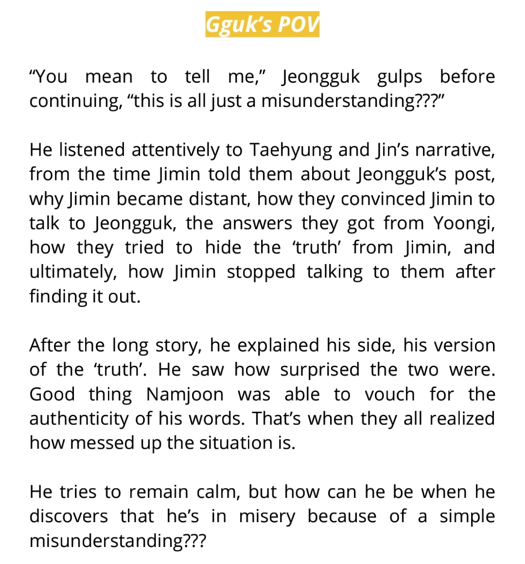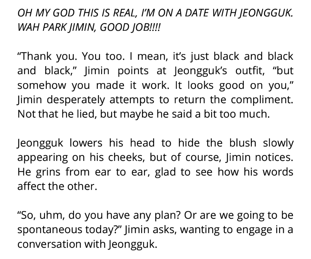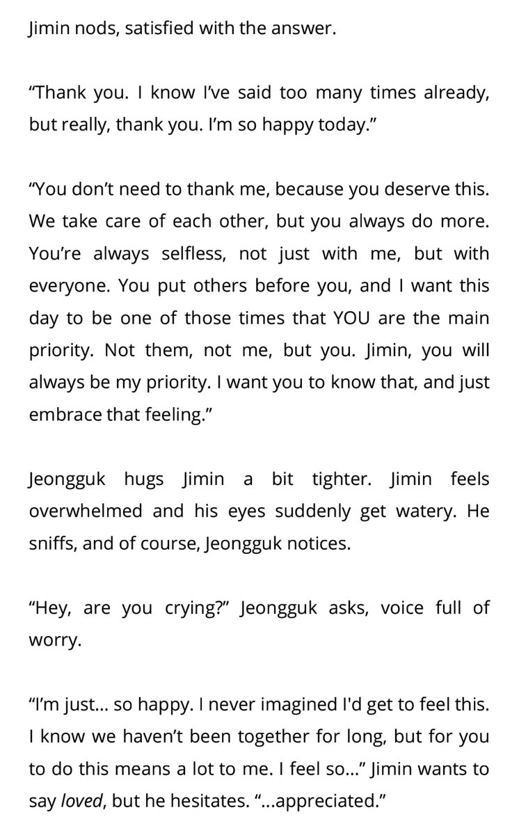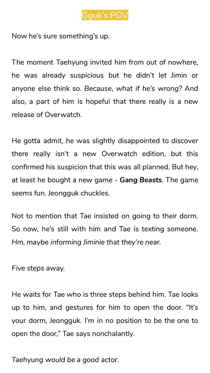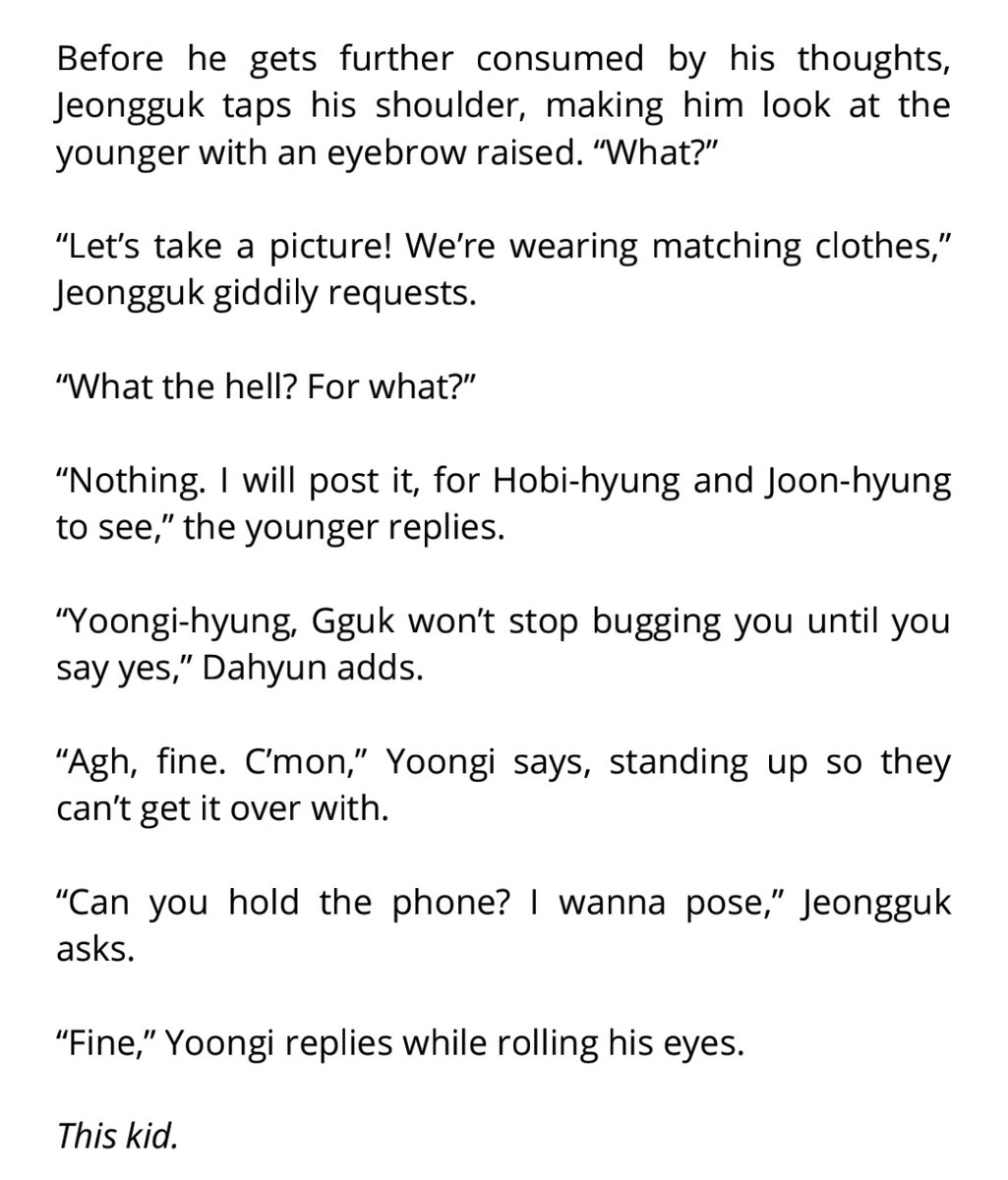 — i include narration from other characters (not gguk/minie) bc i want the readers to see things from their perspective & to know their feelings as well ❤️