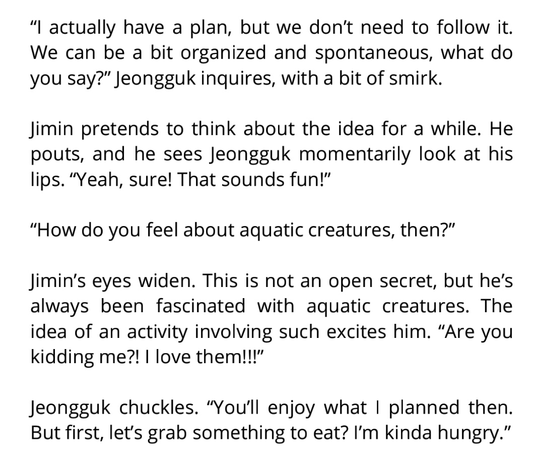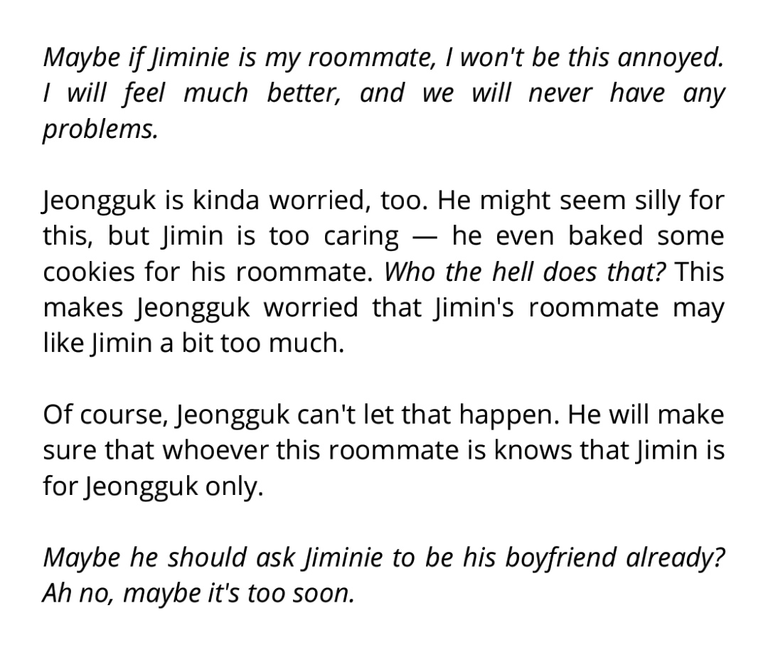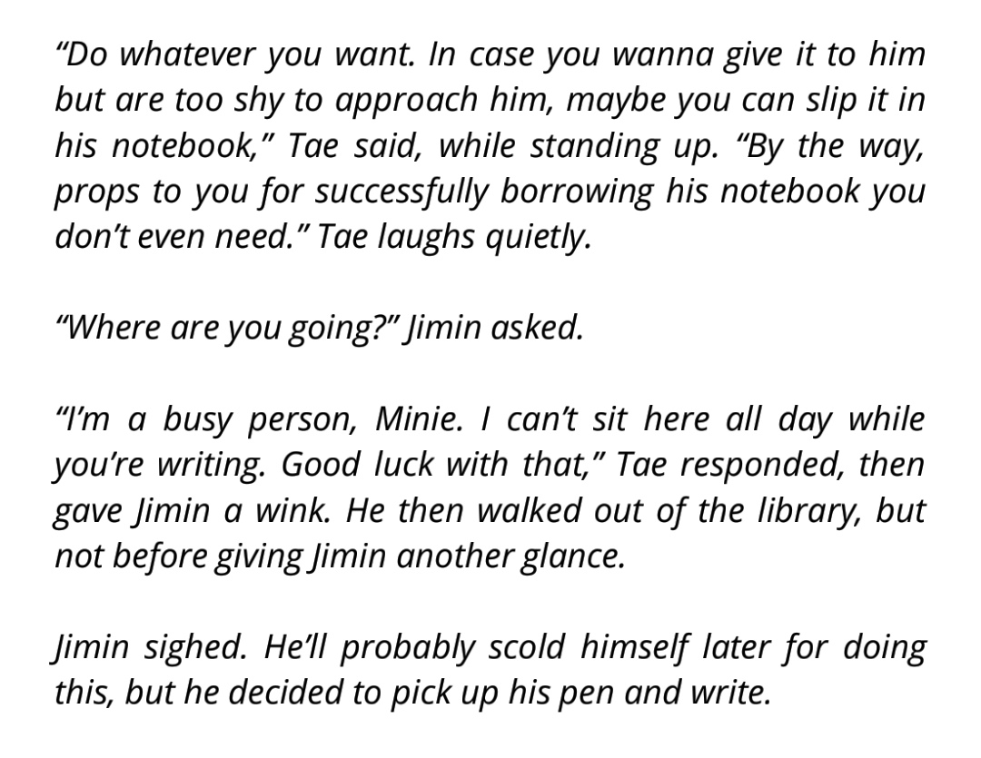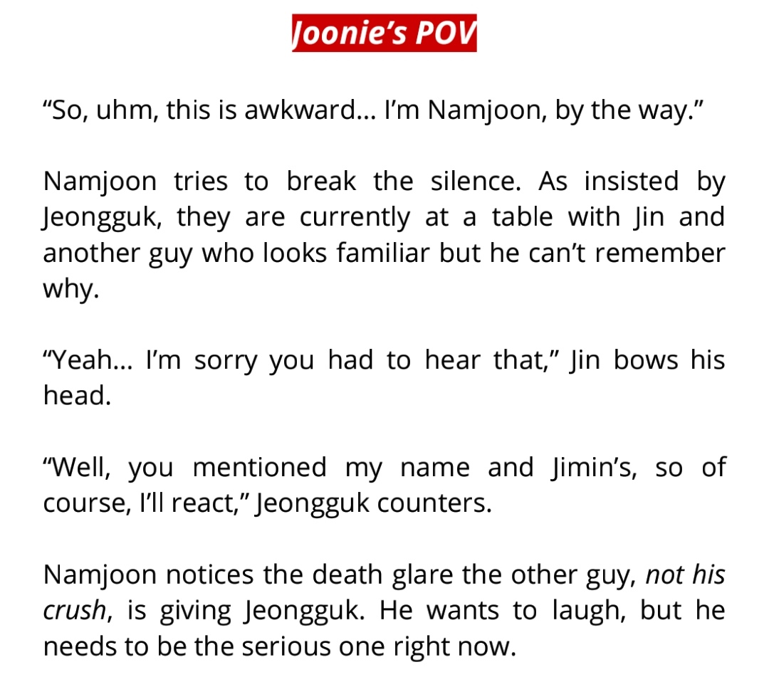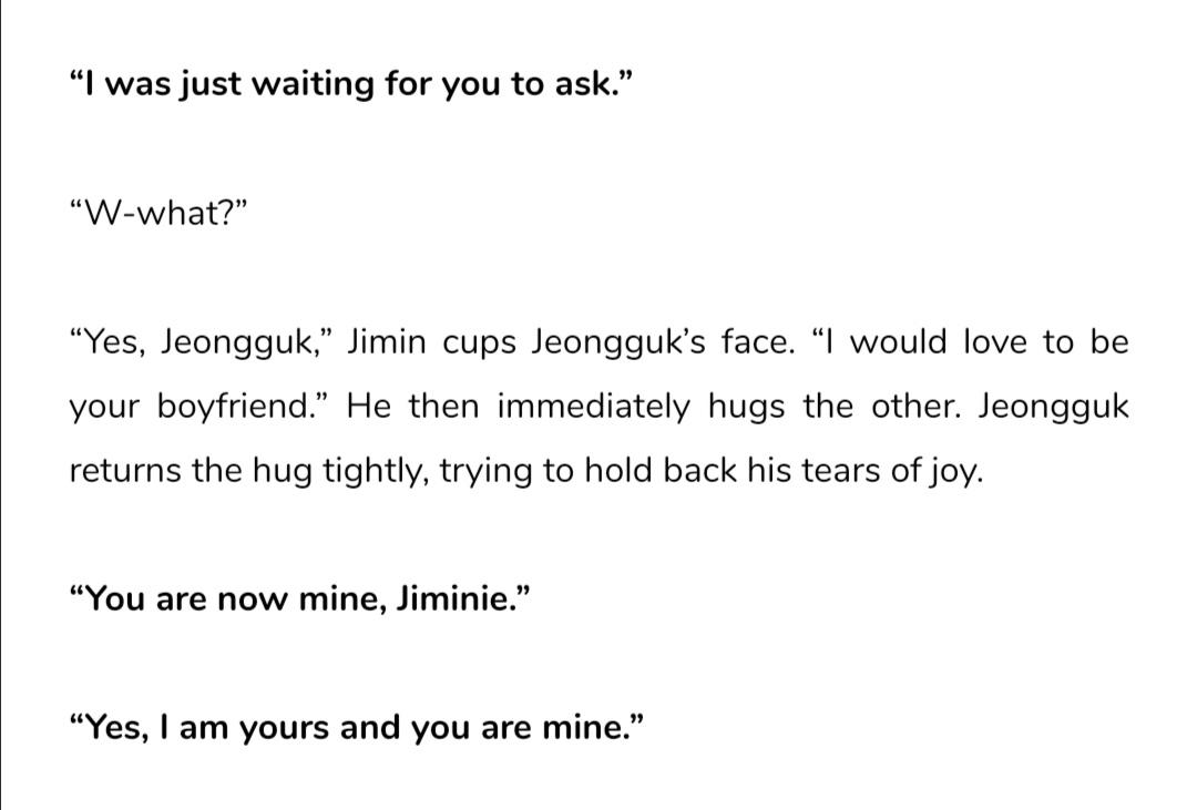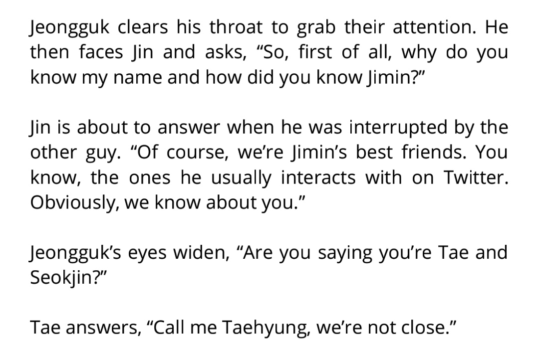 — i include narration from other characters (not gguk/minie) bc i want the readers to see things from their perspective & to know their feelings as well ❤️