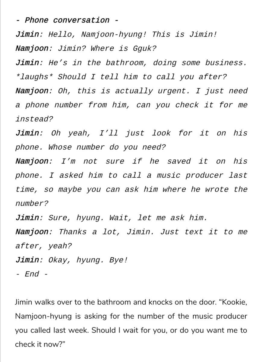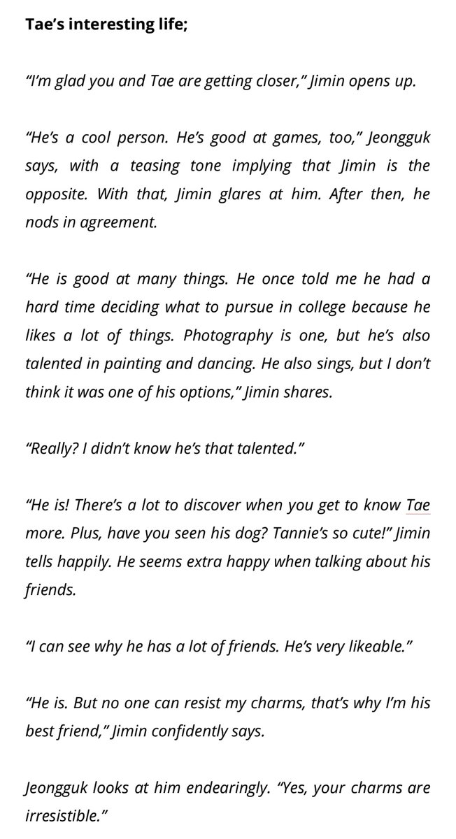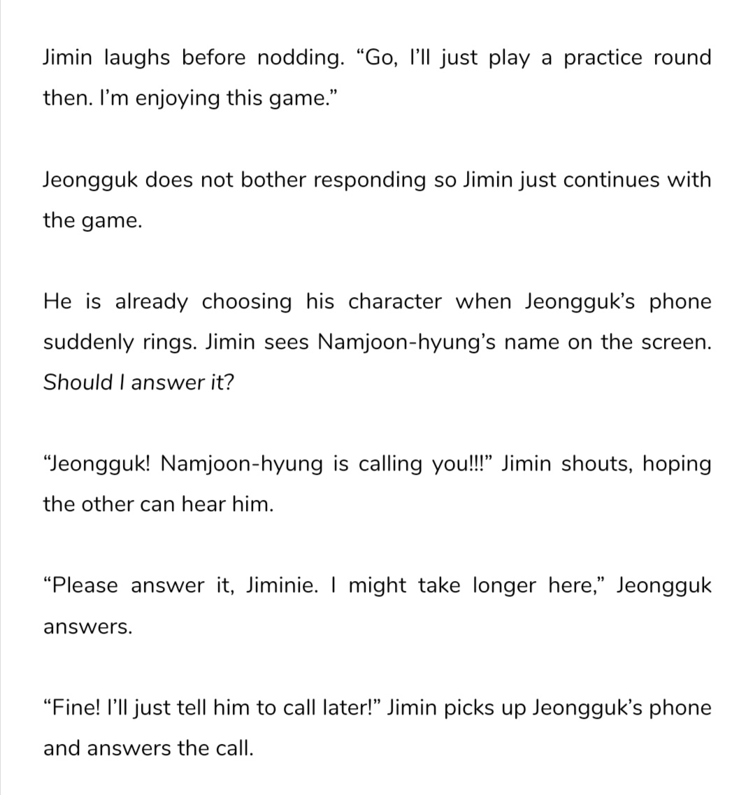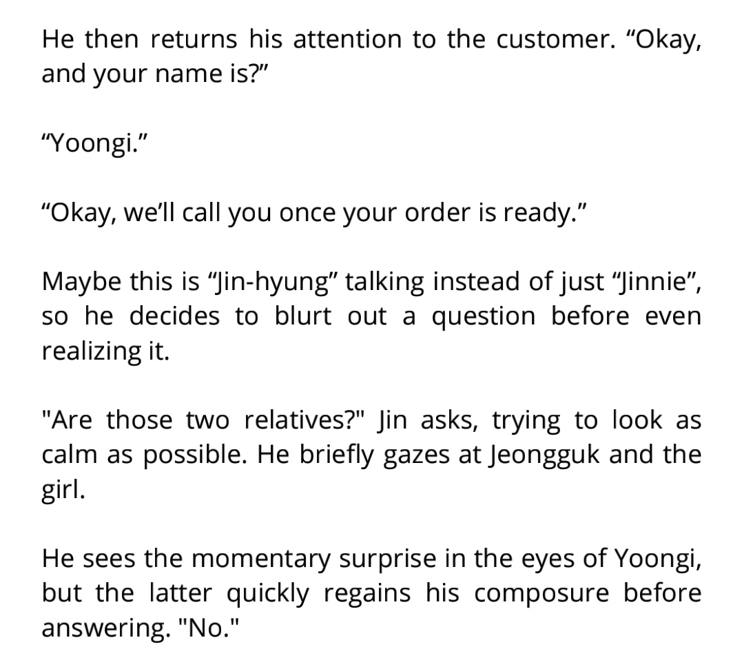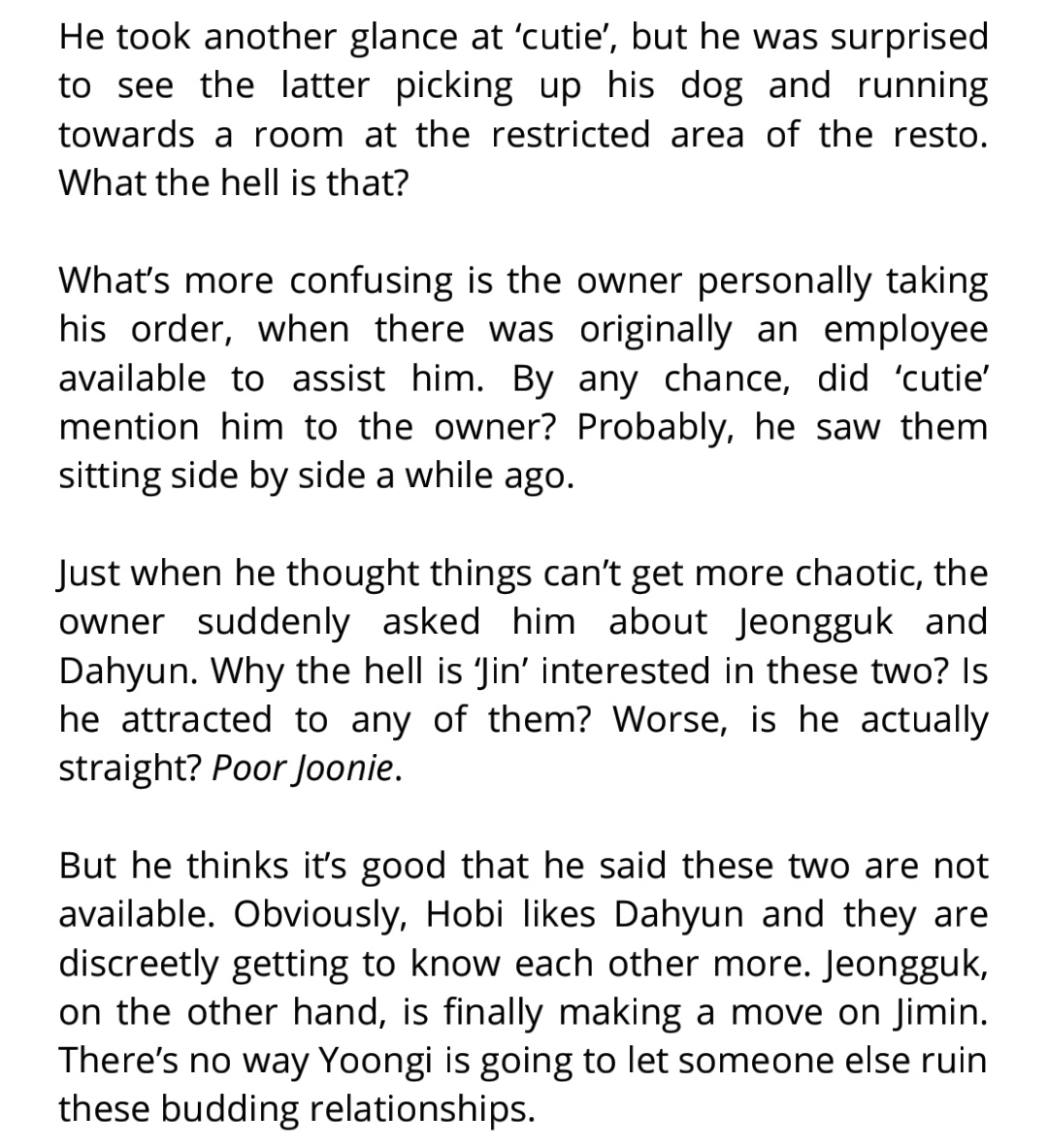— i include narration from other characters (not gguk/minie) bc i want the readers to see things from their perspective & to know their feelings as well ❤️