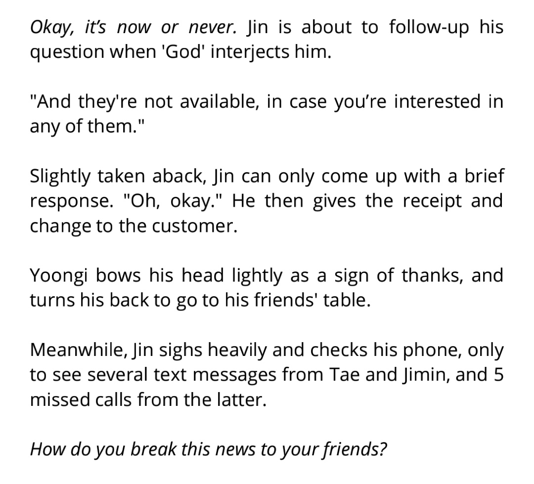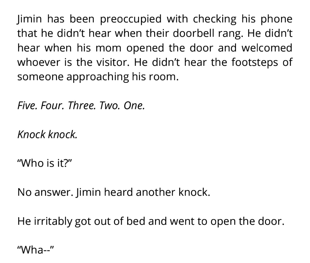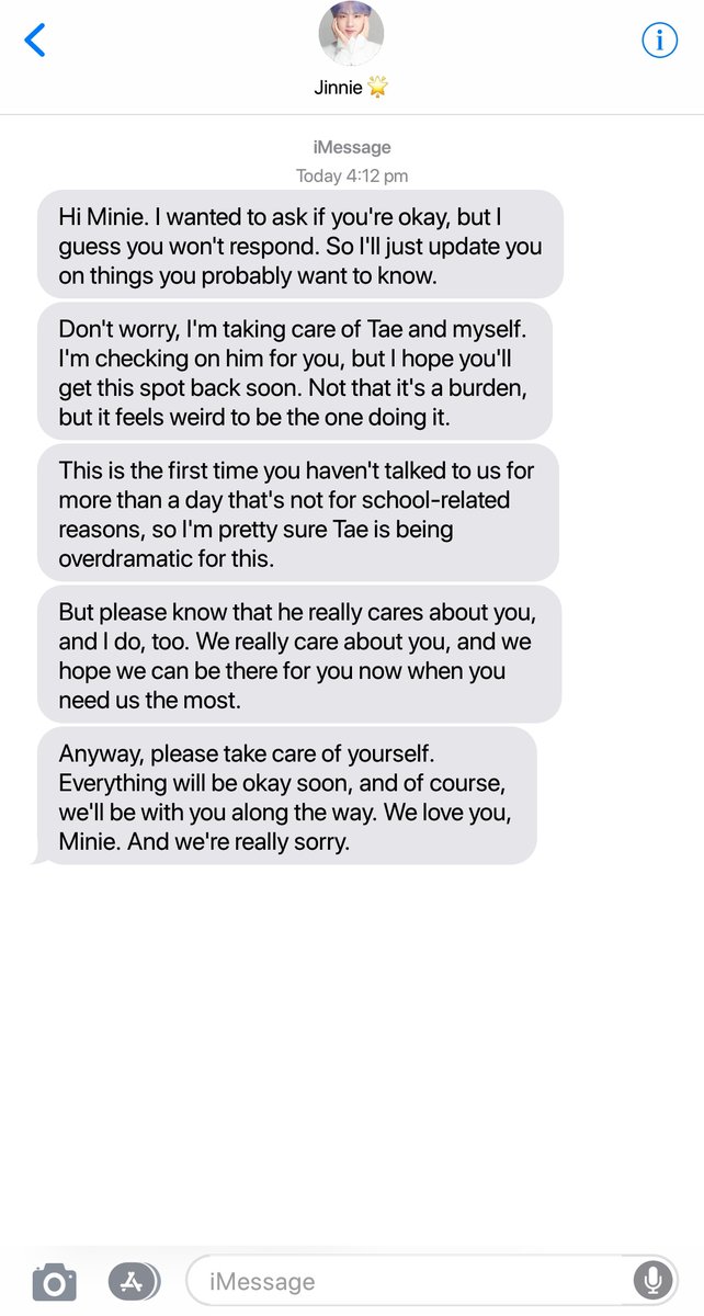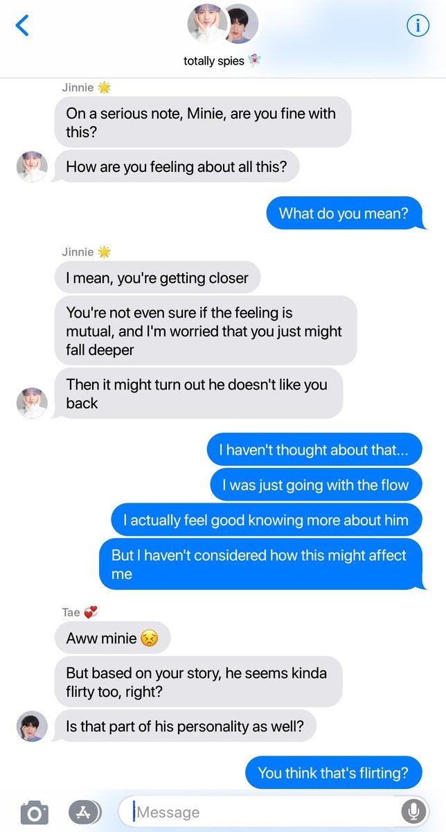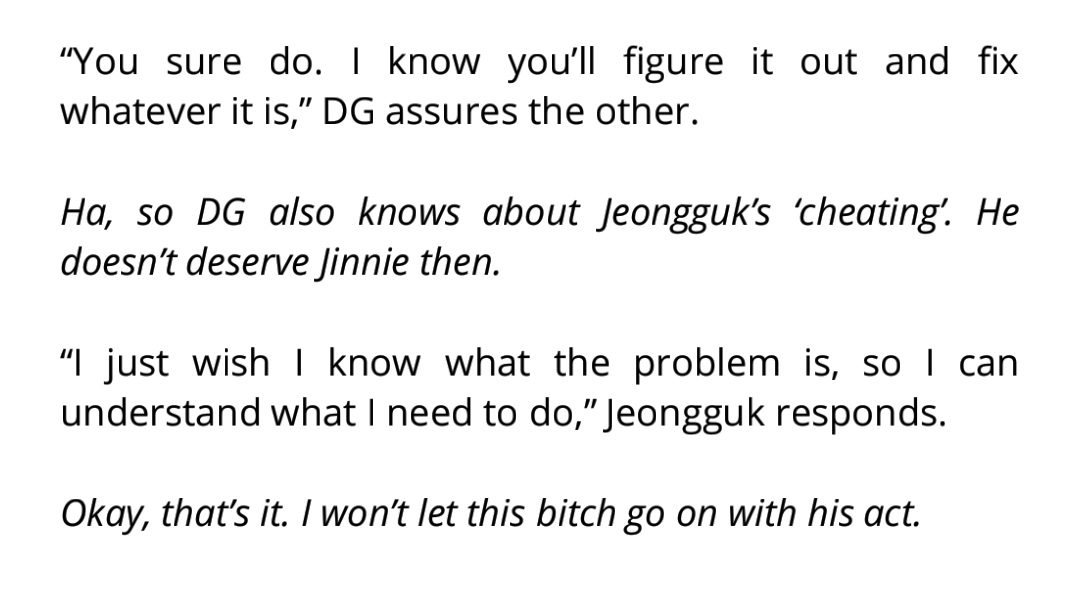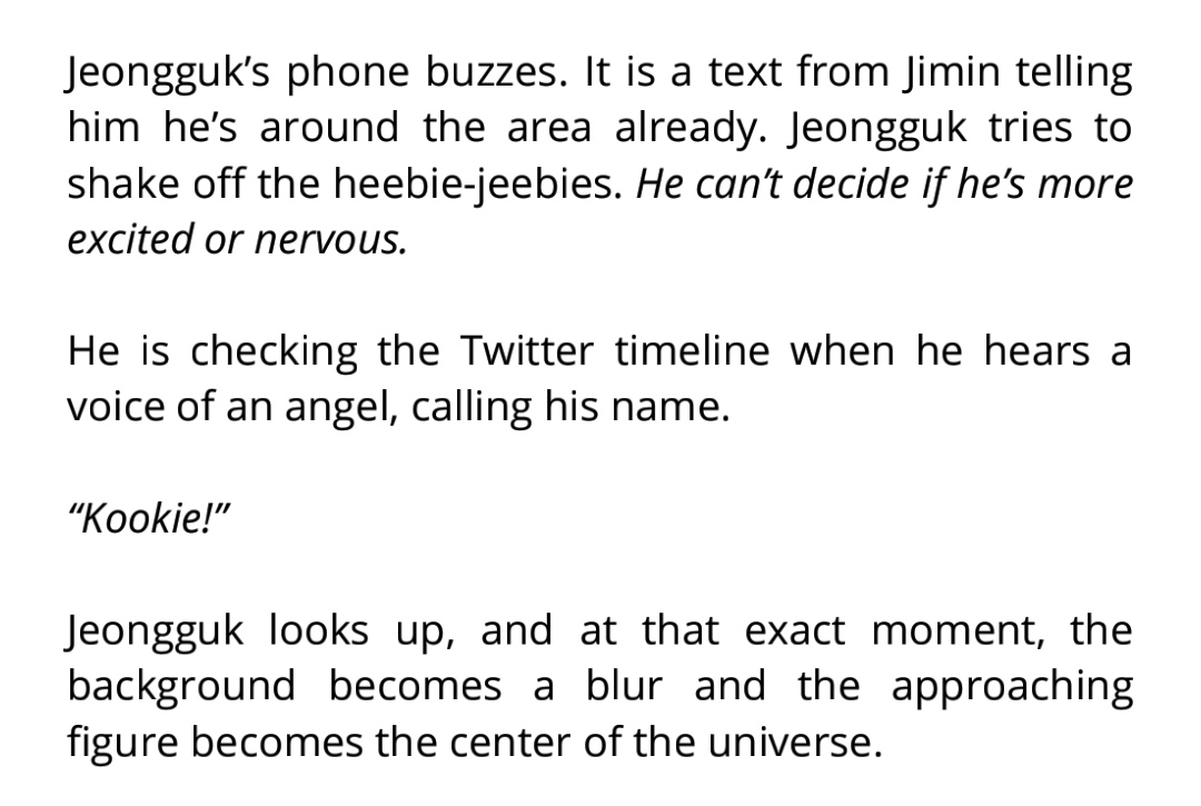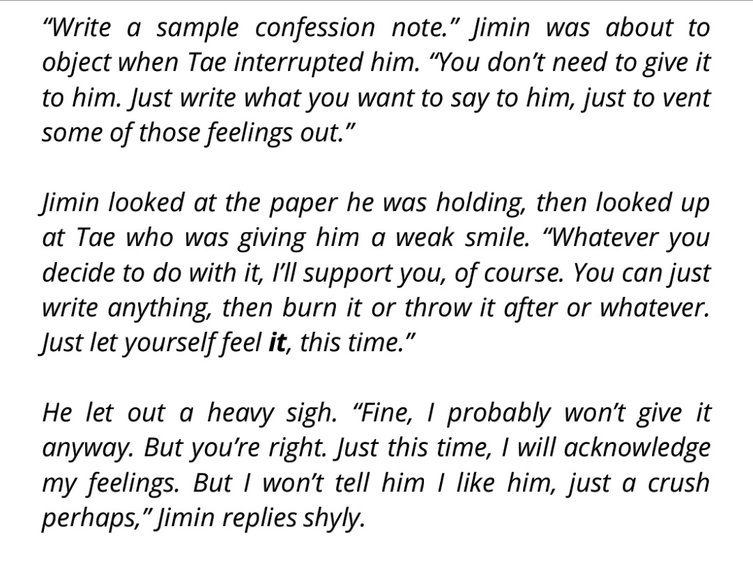 — i include narration from other characters (not gguk/minie) bc i want the readers to see things from their perspective & to know their feelings as well ❤️