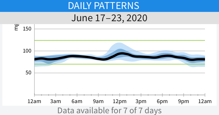 I'm three weeks in. The first week, I ate normally. The second week, I ate 75-250g carbs (sweet potato, Arborio rice, wheat berries, quinoa, carrots) to challenge the BG curve. This week,