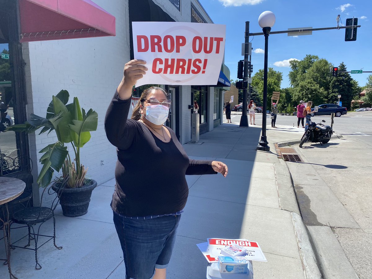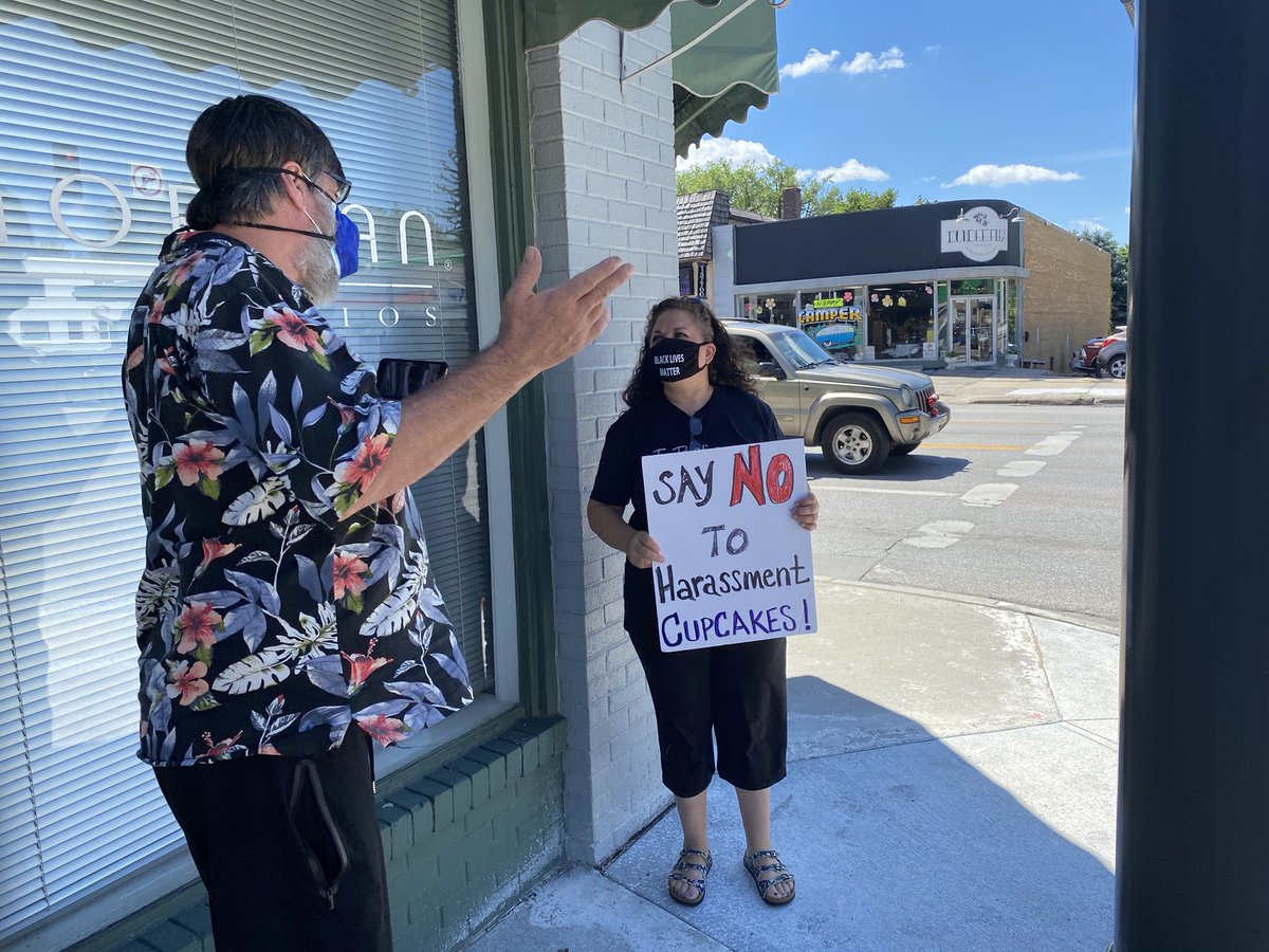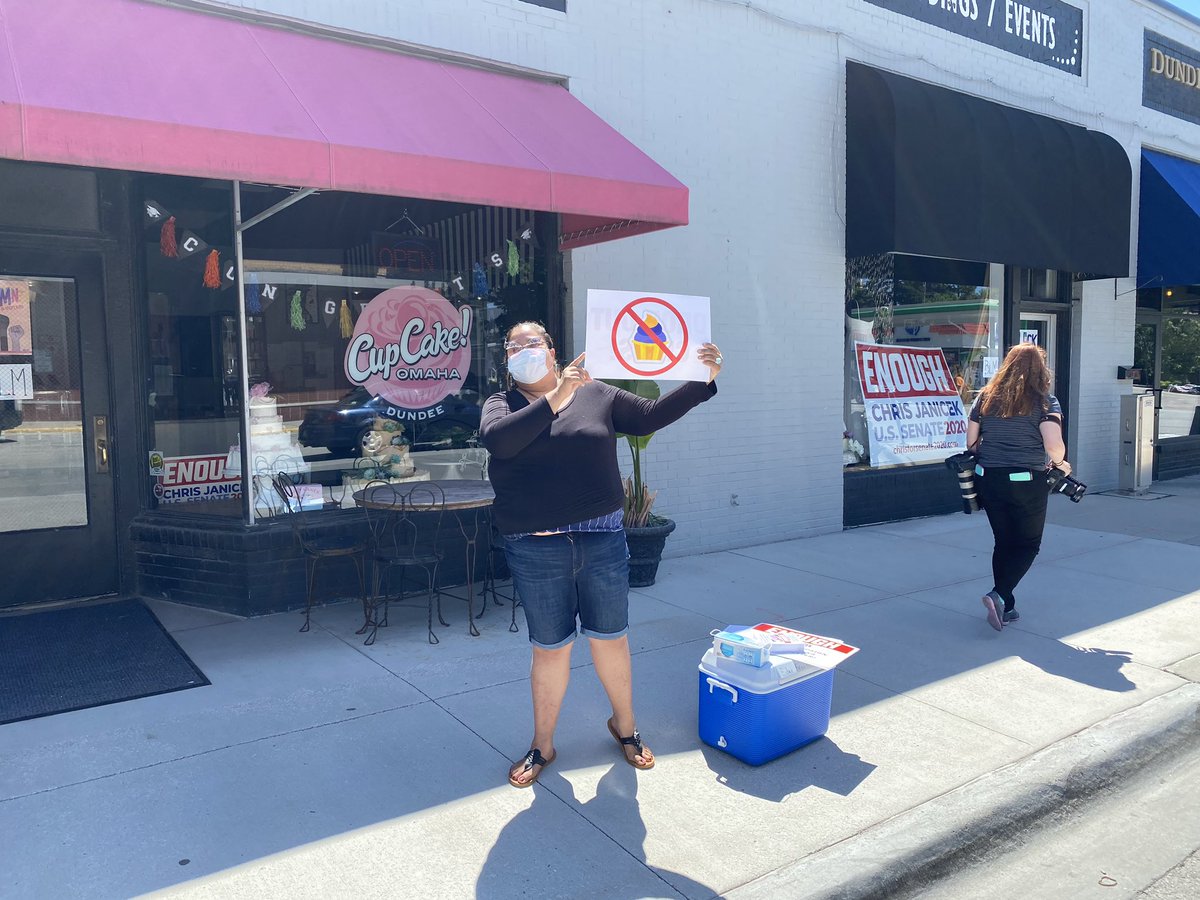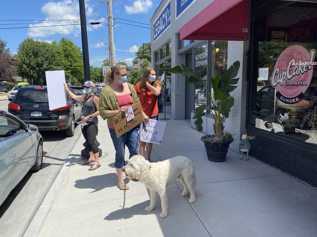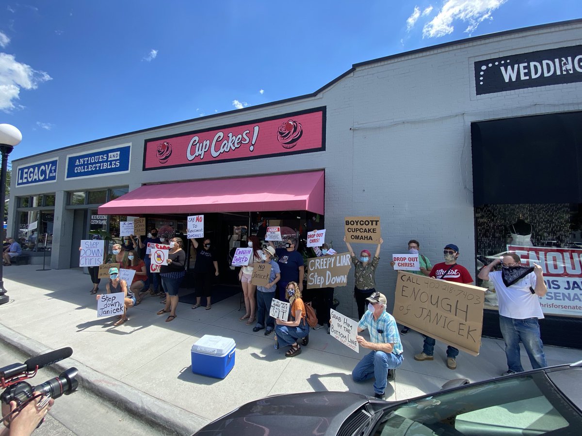 One last update: A handful of protesters returned to 50th and Dodge around evening rush hour. One of them confronted Janicek in his shop, which had reopened. He closed @CupcakeOmaha for the day shortly after, I verified with protesters and @CJSenate2020.
