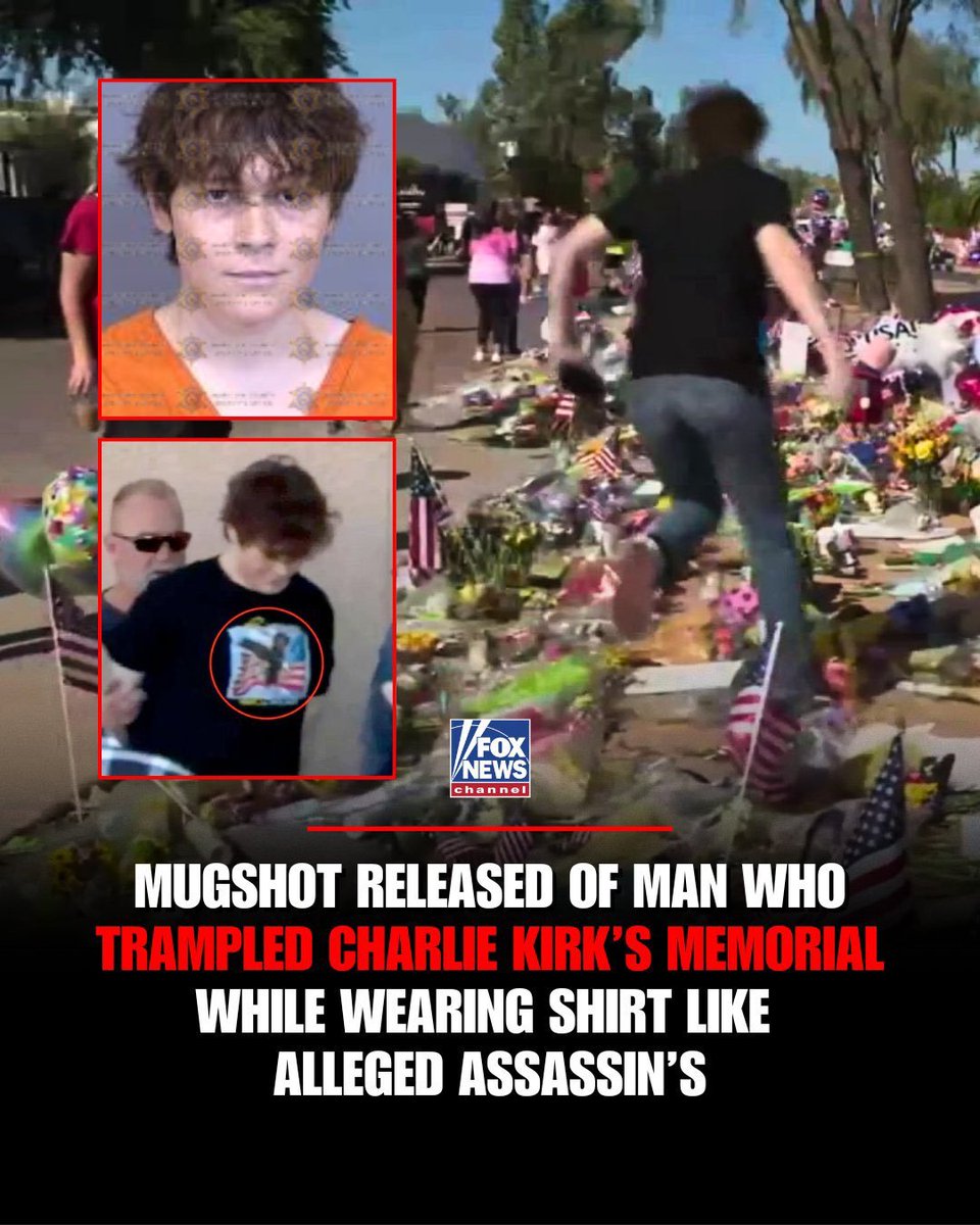 (3) But get this: Yesterday's X buzz exploded when Ryder Corral (that 19-y.o. TPUSA memorial trasher) got pinched in the exact same eagle-flag black long-sleeve—down to the gold accents—while chucking Kirk tributes in Phoenix.