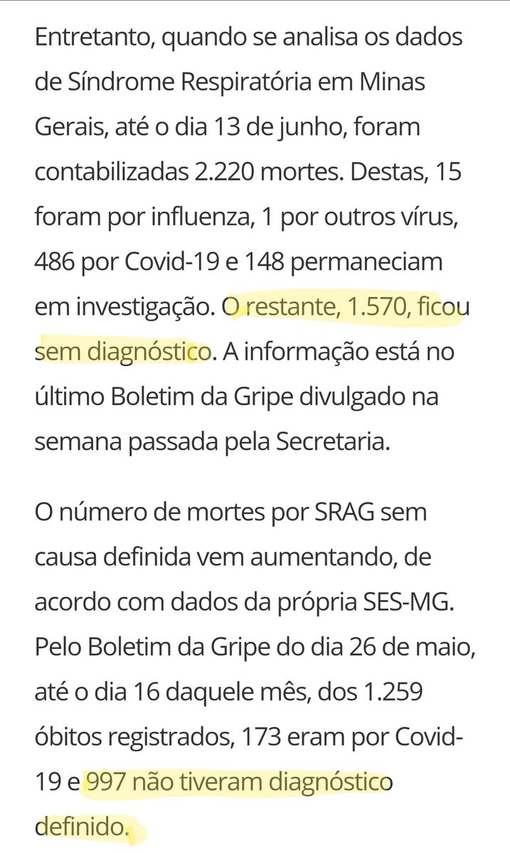 Há problemas graves na narrativa dessa reportagem que induzem o leitor ao erro. A reportagem afirma que 70% das causas de mortes por SRAG em Minas não têm causa definida e secretaria admite falha em testes. Mas não é bem assim. g1.globo.com/google/amp/mg/…