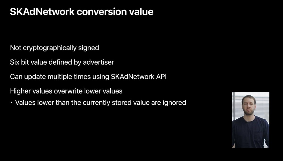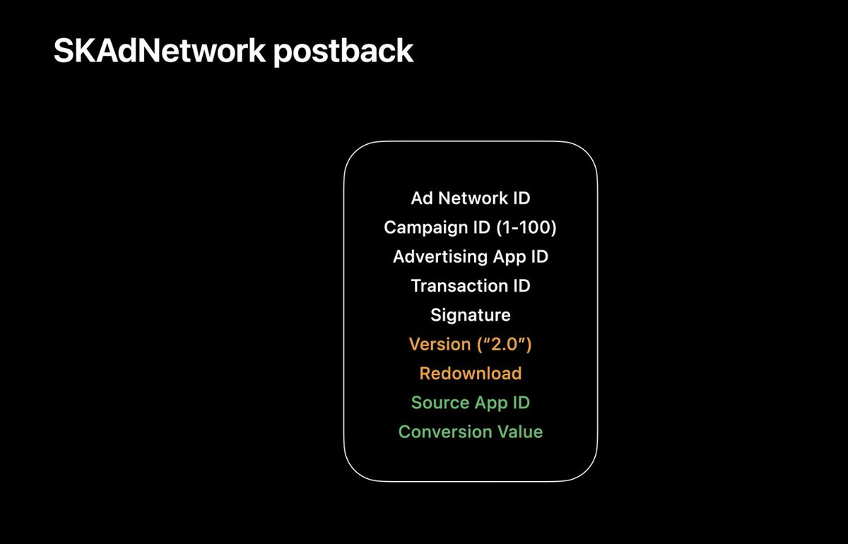 5/ This likely means that every ad network will now offer AEO- and VO-equivalent campaign strategies, since Apple will handle conversion event posting and there's no reason to withhold that info from networks since the postbacks are anonymous