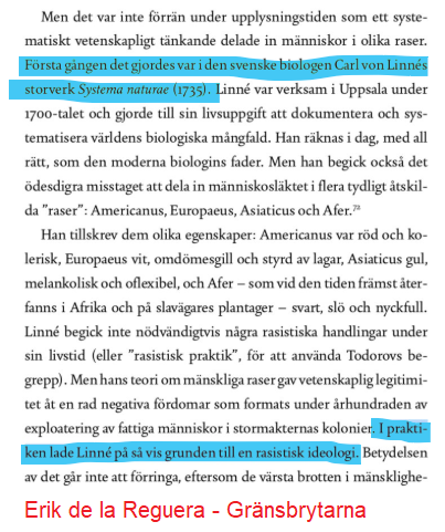 En del hävdar att Linné var först med att placera de rasistiska idéerna i ett ->