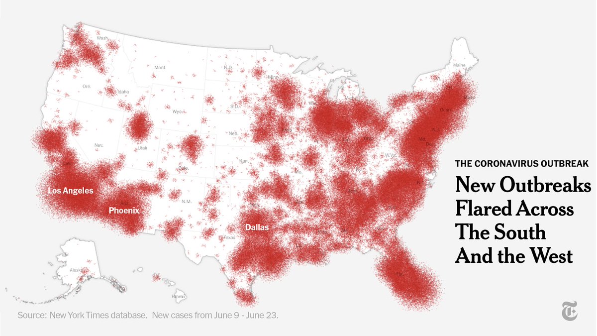 As lockdowns expire, new cases have spiked, with new outbreaks in the South and the West. nyti.ms/2YyocPr