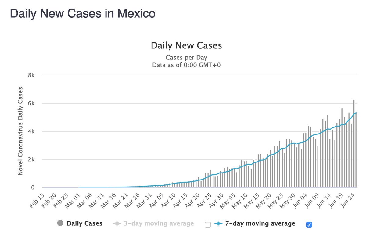 Still not being reported is that Mexico is out of control. They have half the US population but have only done 515,000 tests, less than Wisconsin.