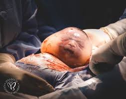 Bayinya keluar masih dengan balutan plasenta dan air seperti didalam kantong.