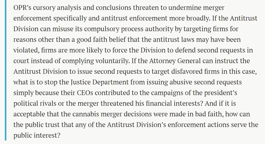 "OPR’s cursory analysis and conclusions threaten to undermine merger enforcement specifically and antitrust enforcement more broadly."