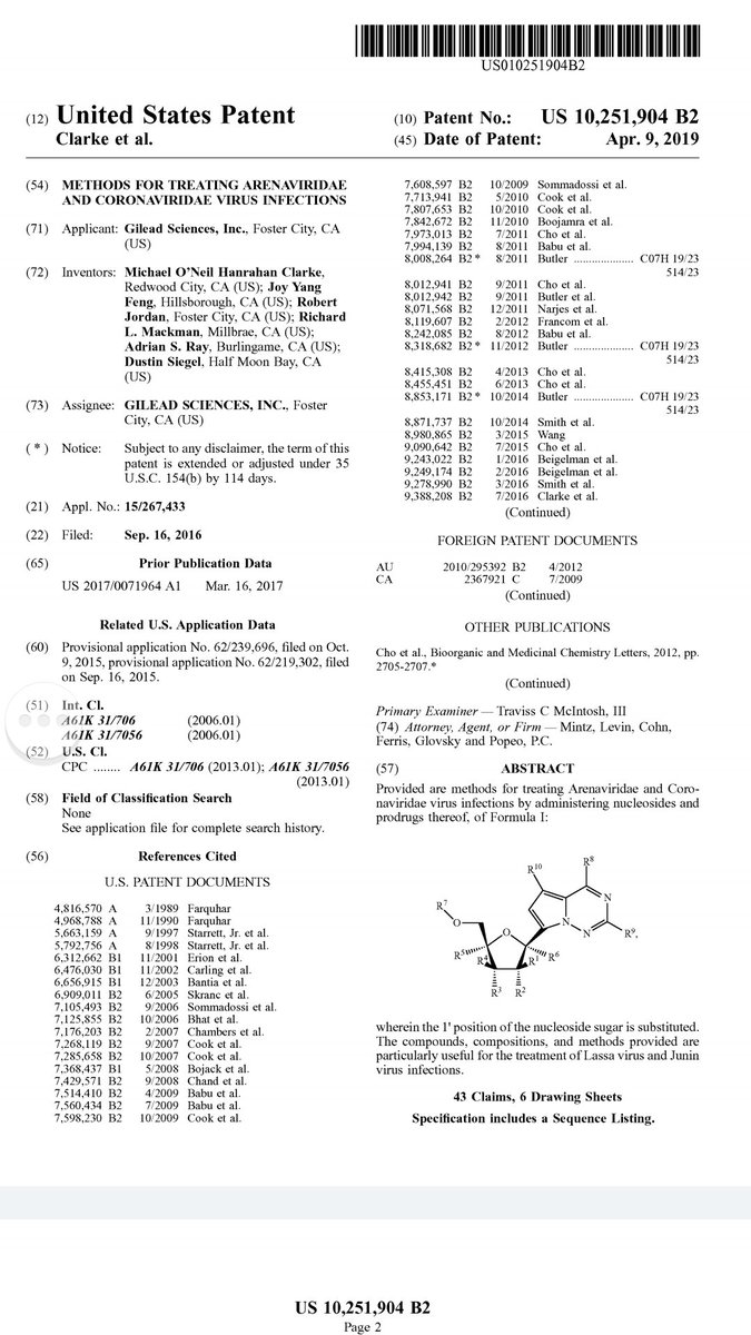 4. On January 21, it was reported that China’s Wuhan Institute of Virology of the Chinese Academy of Sciences filed a patent for commercial use of remdesivir in China. trialsitenews.com/wuhan-institut…