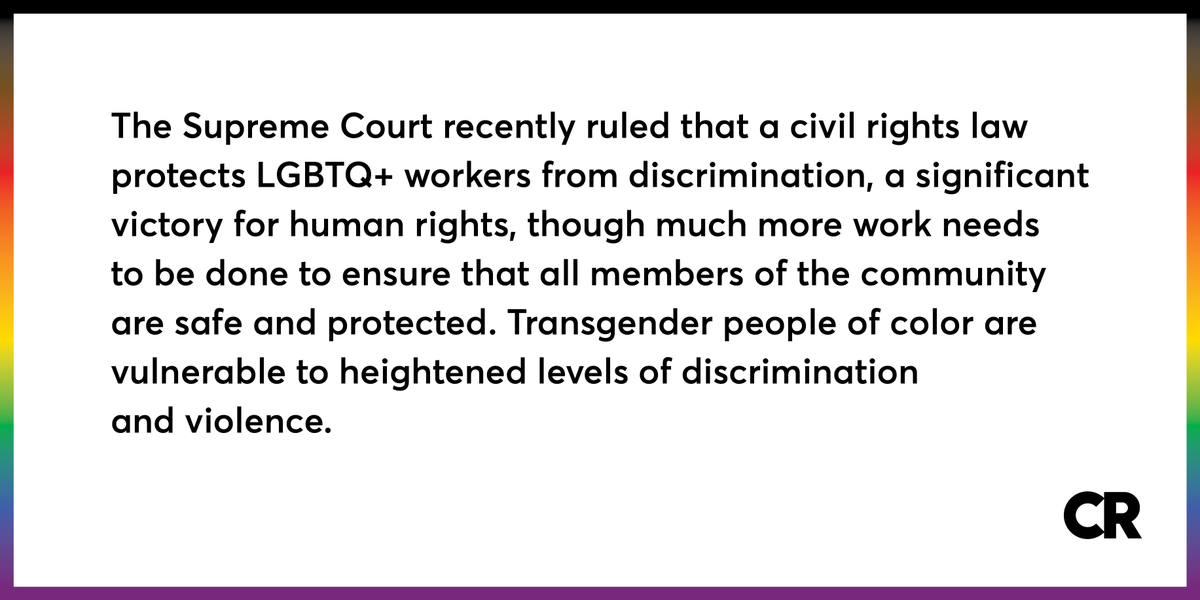 CR celebrates recent gains for LGBTQ+ equality, while recognizing the work still needed to ensure that all members of the community are protected. #PrideMonth