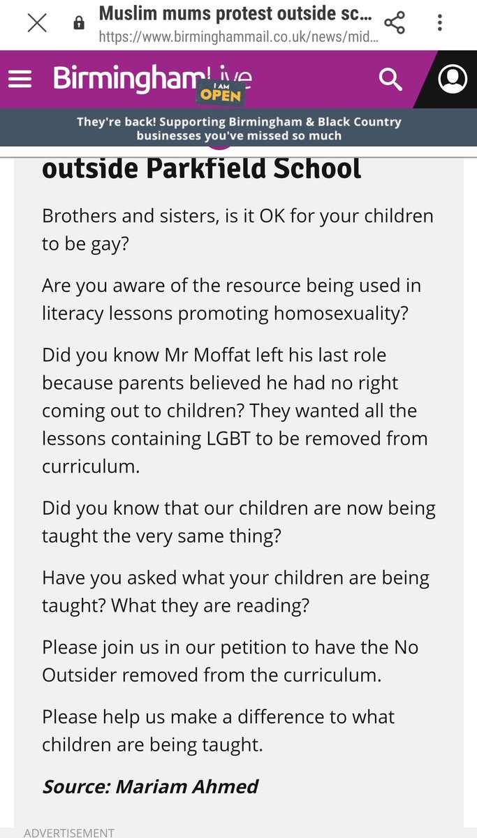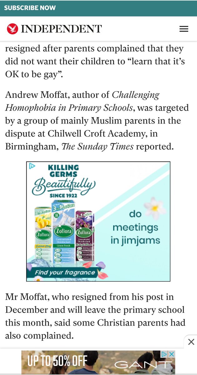 Moffat criticised by parents for piloting No Outsiders - a programme run alongside sex & relationship education (SRE)