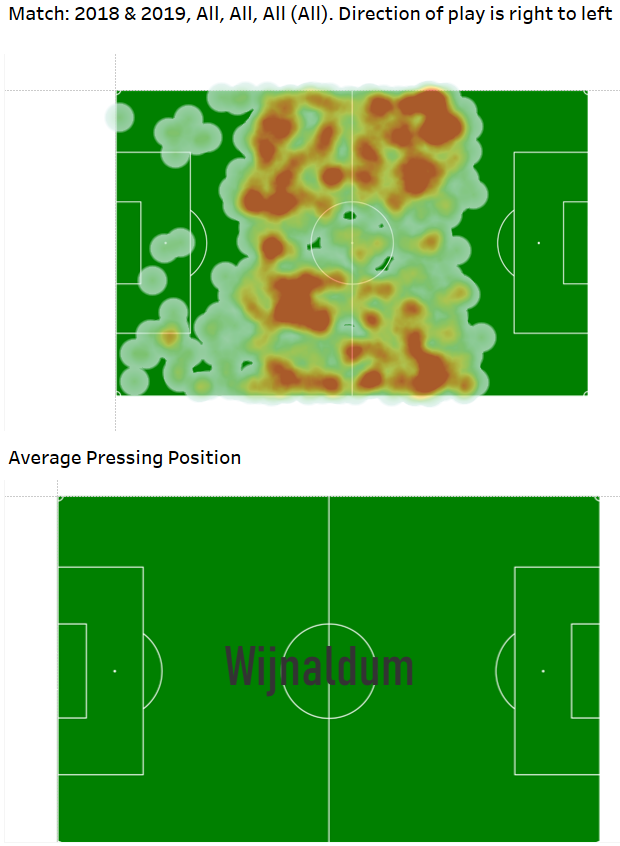 Great question from @CadyJon on Wijnaldum. What makes him so important, does our data tell any stories? Well he presses about 30% less than our all other midfielders which lines up with his on-ball metrics.