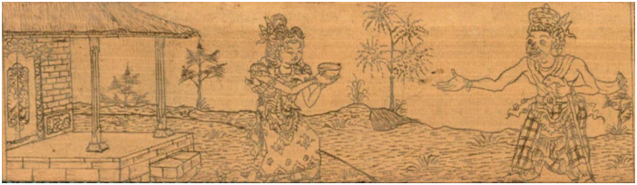 அதனால் அவன் வெளியில் நின்று ஒரு துறவி பிக்ஷை கேட்பது போலக் கேட்டான். அந்தனரைக் கண்டதும், ஸீதை தன்னிடம் இருந்த அன்னத்தை எடுத்துக் கொண்டு