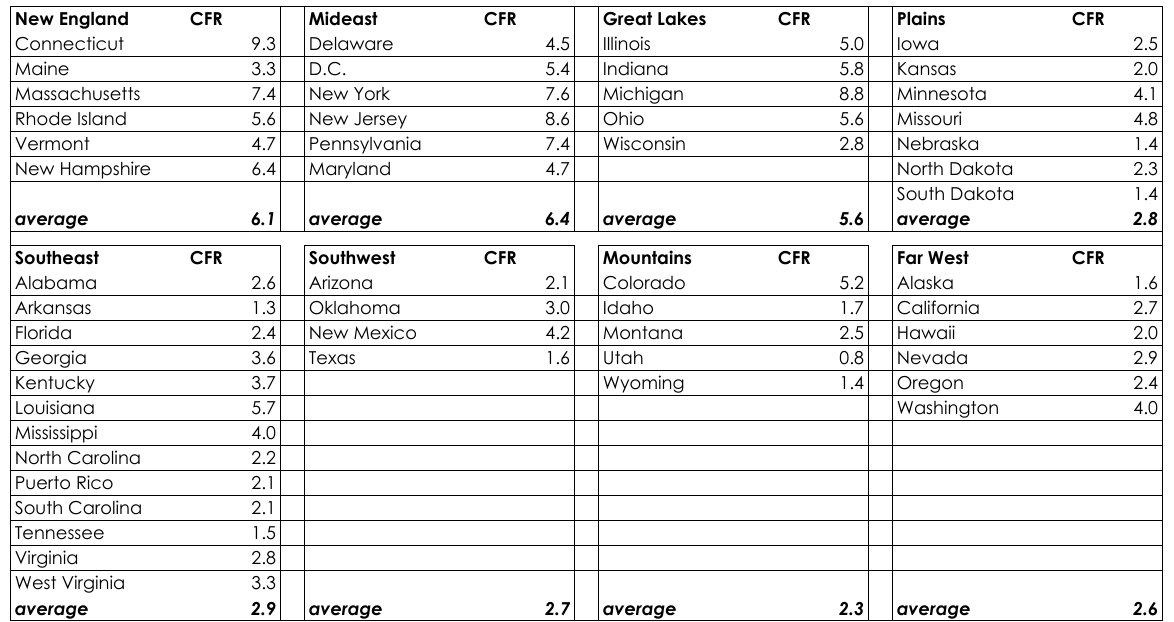 Keep in mind, the original is half the result of April 14 because of different ages and the revision is lower than the projection that relied on overall averages. Even the revision is relying on data almost a month old, meaning the decline in CFR is probably understated.