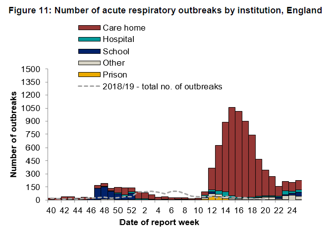 So, how do we know that there isn’t an outbreak in our local area? Basically, we don’t. But the PHE surveillance report is the best we have for now. Also worth examining the cluster of outbreaks around Manchester (which may be outbreaks in schools or hospitals)
