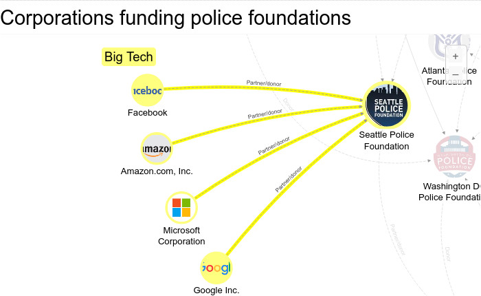 Facebook, Google, and Microsoft: "partners and donors to the Seattle Police Foundation"