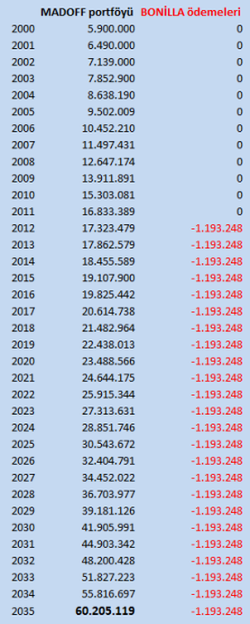 Gelelim Wilpon başkana... sen koskoca takım sahibisin. Bu tongaya nasıl düştün? Basit; %10 faizi 35 yıl boyunca bileşiklendirip, önüne gelen rakamdan sarhoş olarak...
